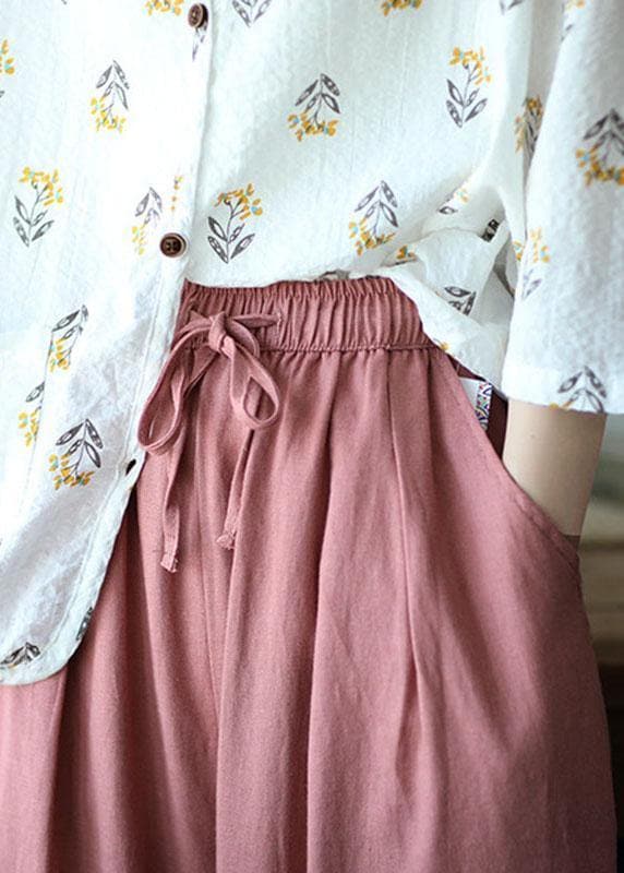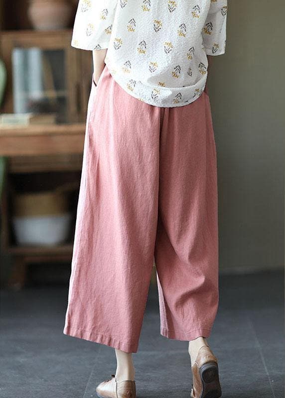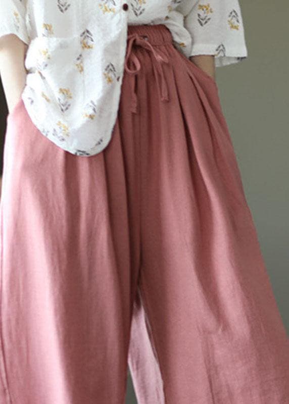 Italian Pink High Waist Tie Waist Fall Wide Leg Linen Pants