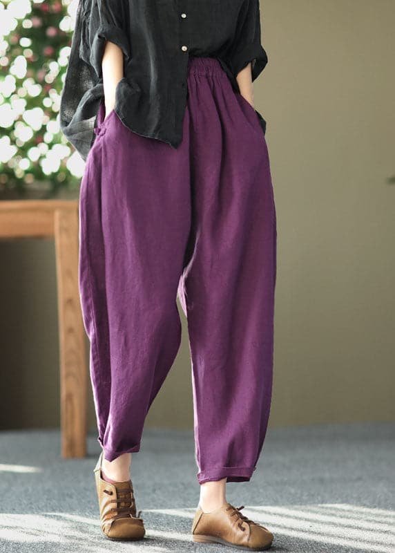 Italian Purple Oriental High Waist Linen Harem Pants Summer
