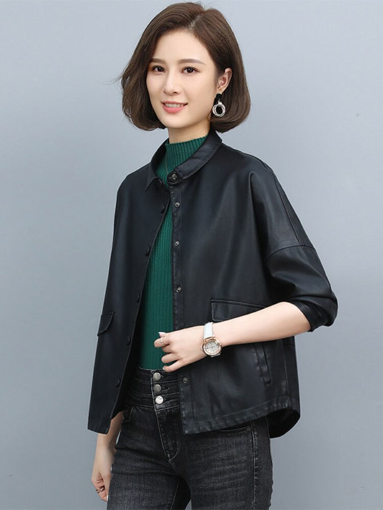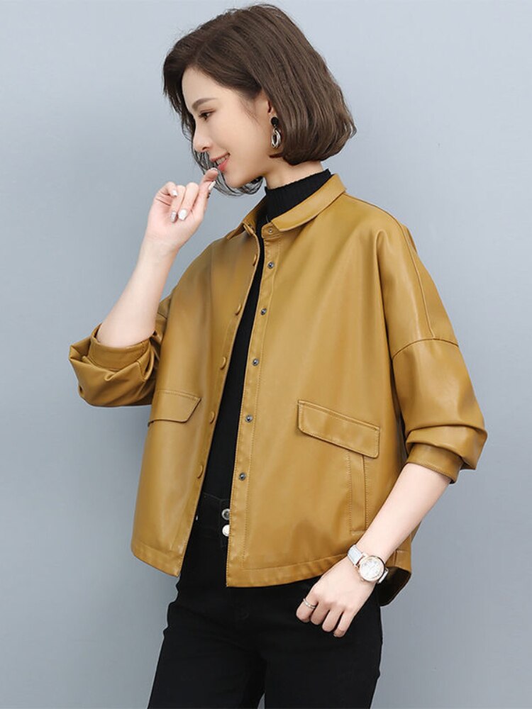 Jackets for Women Spring 2023 New Korean Fashion Cropped Leather Jacket Tops Lapel Long Sleeve Coats Streetwear Woman Clothes
