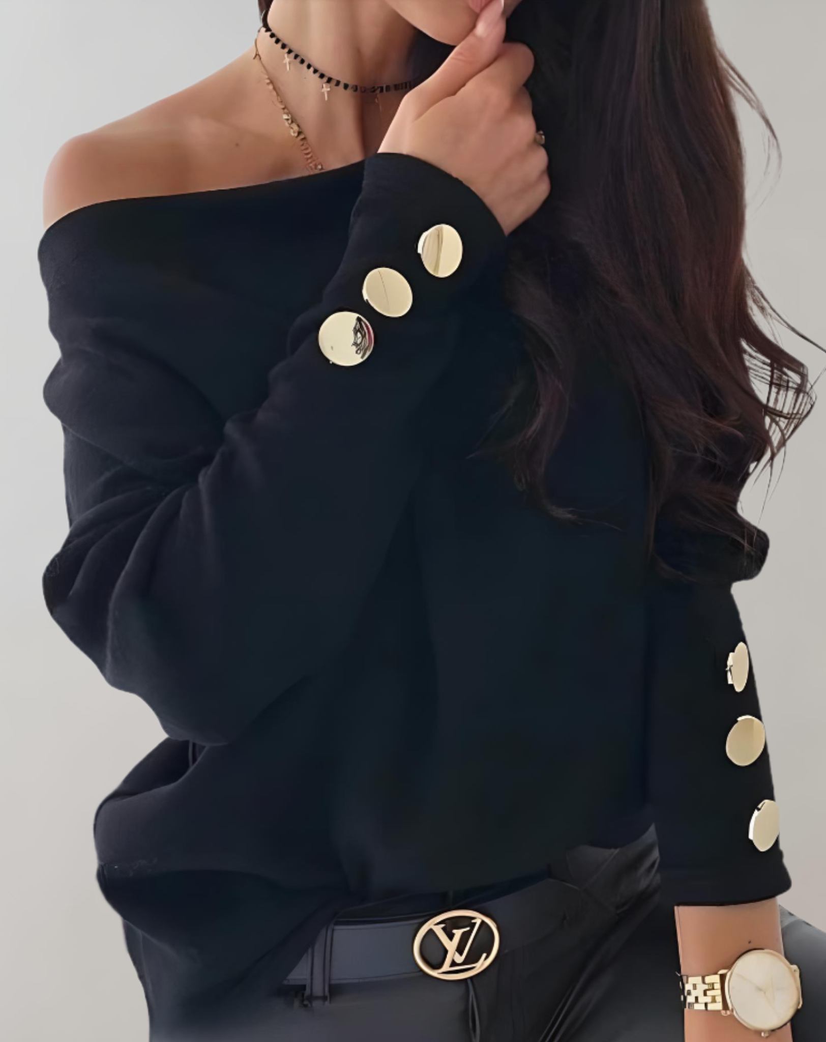 Jade - Women's Single V-Neck Sweater with Sleeve Buttons