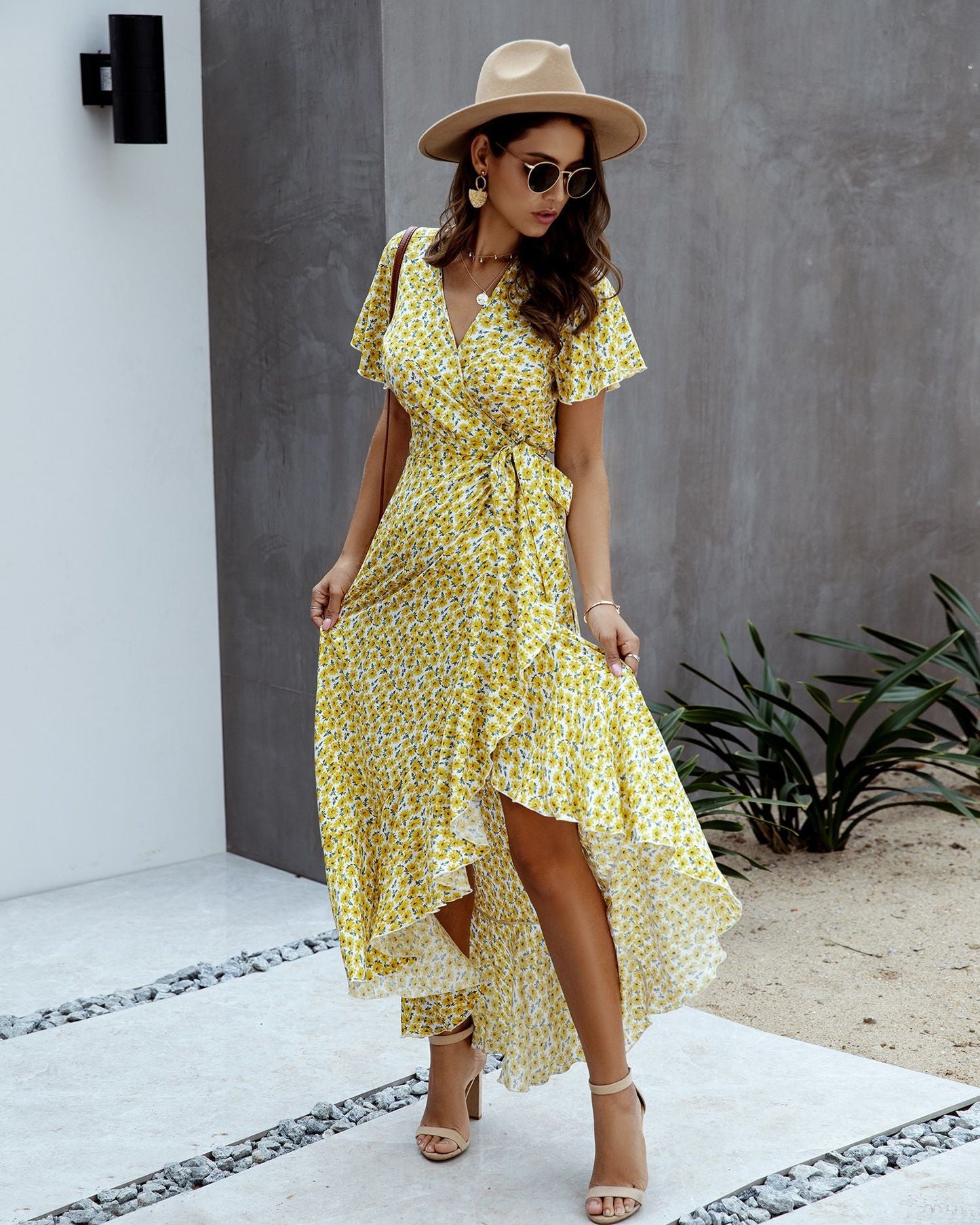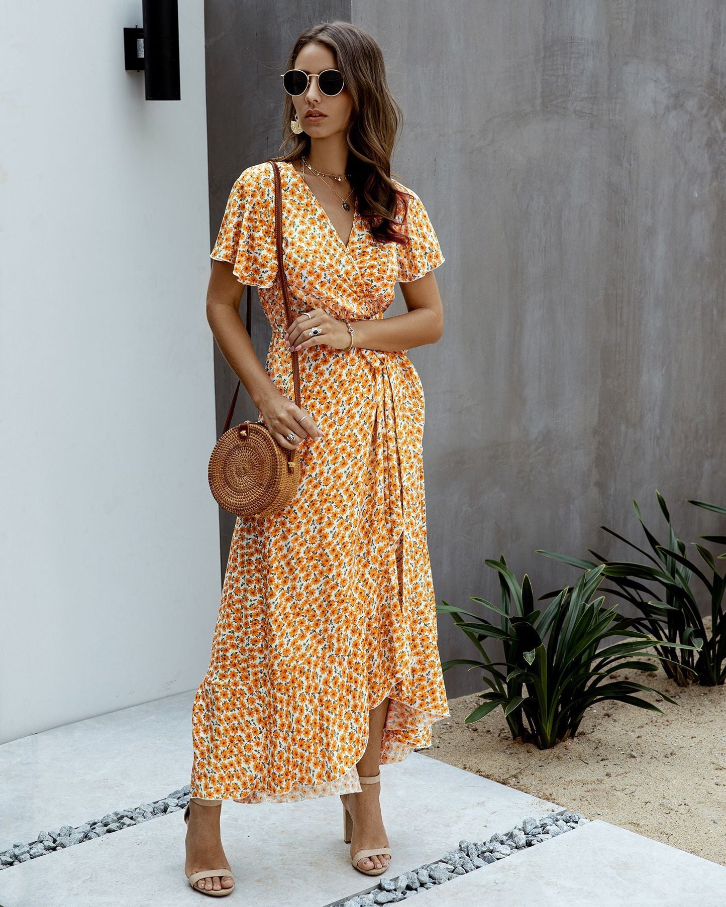 The midi length, emphasis on the waist and the V-neck will beautifully accentuate the bust and make your look interesting and memorable! The flowing fabric is pleasant to the touch and practical to wear: it practically does not wrinkle!
