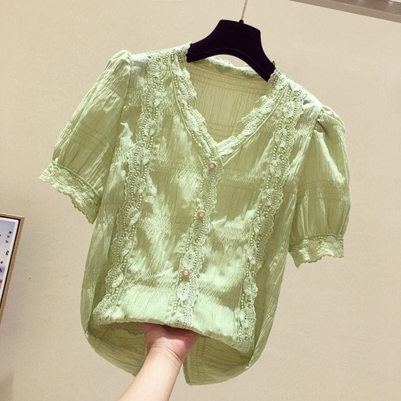 Feel artistic and colorful in this Lace Embroidered korean T-shirt. The bright colors of the lace embroidery stand vividly apart against its solid color background. The interesting pattern, when paired with its classic structure, creates a balance between casual and dressy. You can easily pair with linen pants or denim shorts and vintage flats.