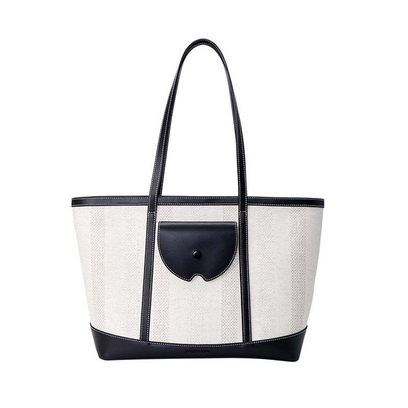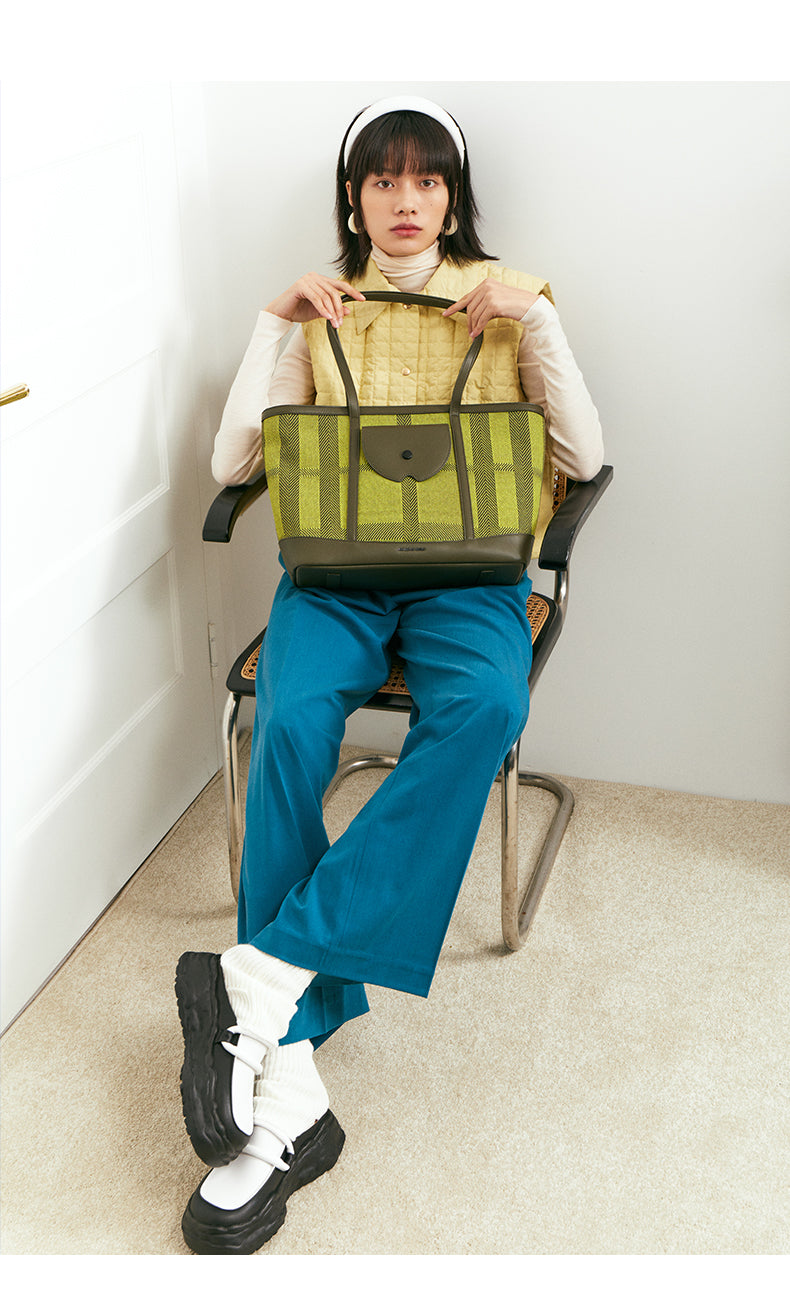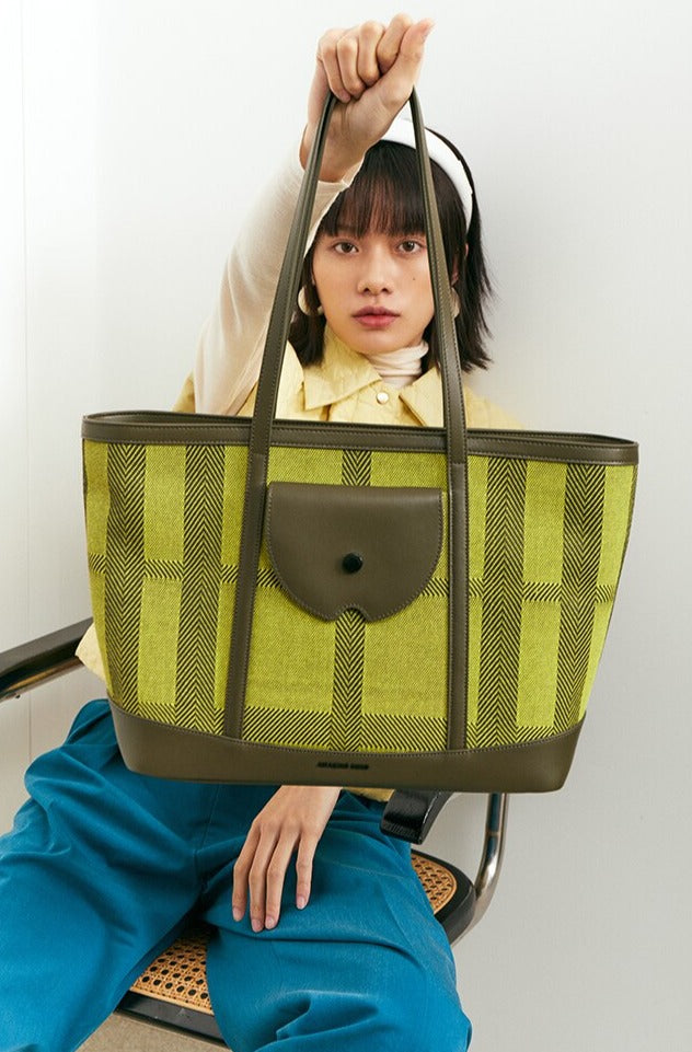 Brand design elements on the classic TOTE bag type to continue with new woven fabrics inspired fashion style with fun.