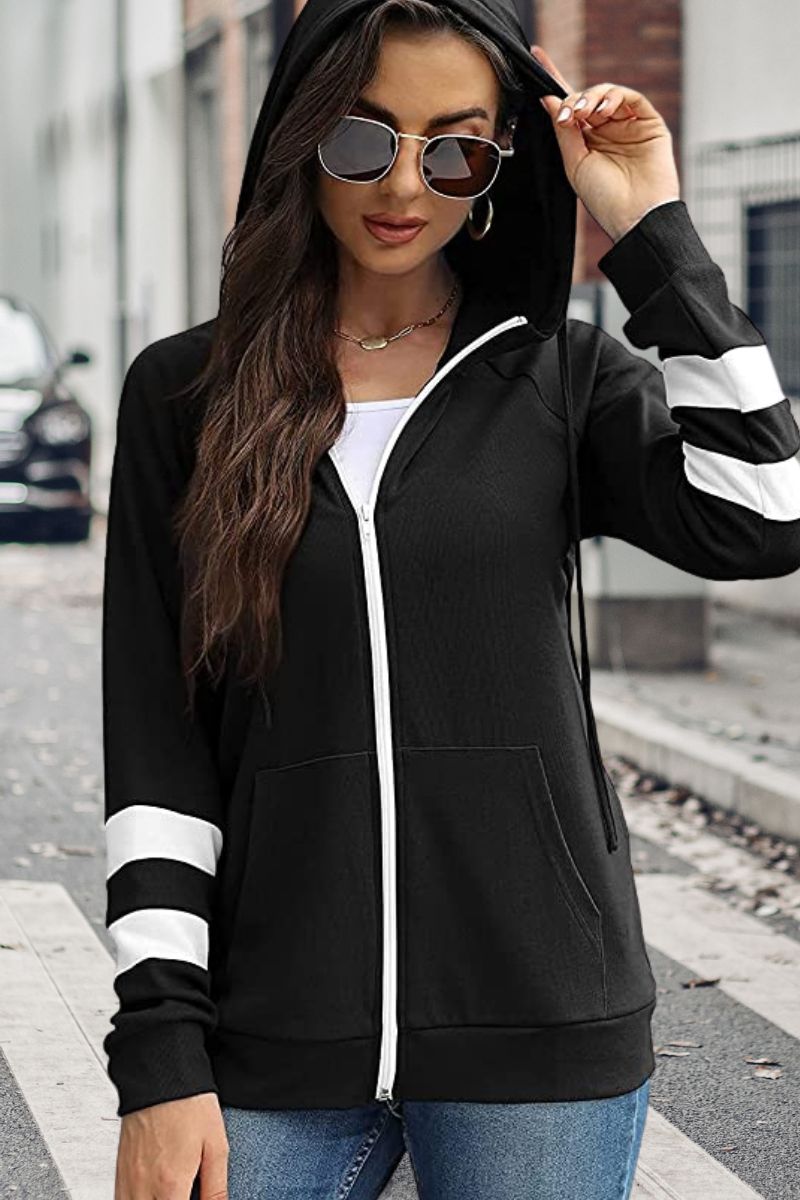Yes, this hoodie comes with pockets and zipper closing.