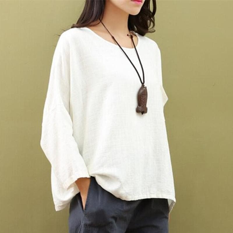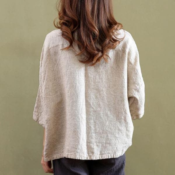 Embrace the all-flawless elegance of this Loose Linen and Cotton Shirt. The casual designs of this shirt is patterned to polish your feminine look and accentuate your body outline. Its loose silhouette gives that avant-garde free-spirited persona of yours, making you feel comfortably wrapped around this shirt. Lovers of vintage swagger will find this shirt to hold a sparkling appeal that endears them to relish their artistic styles beautifully. Pair this retro shirt with an equally hipster pair of pants to ultimately seal that searing fashion statement.