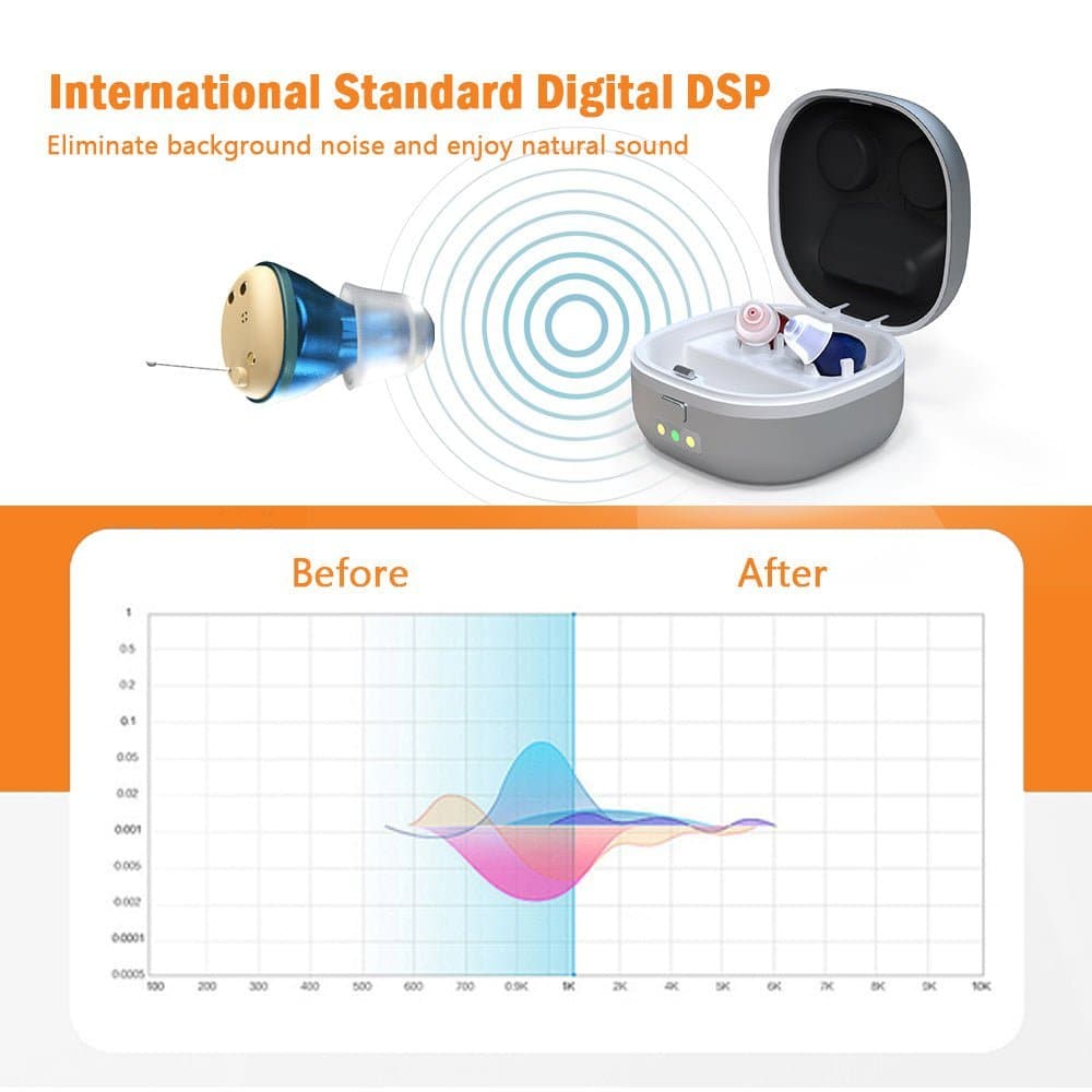 🦻 Completely-in-Canal: Very small and lightweight, no burden for ears for a long time using. Great for people wearing glasses or masks.
