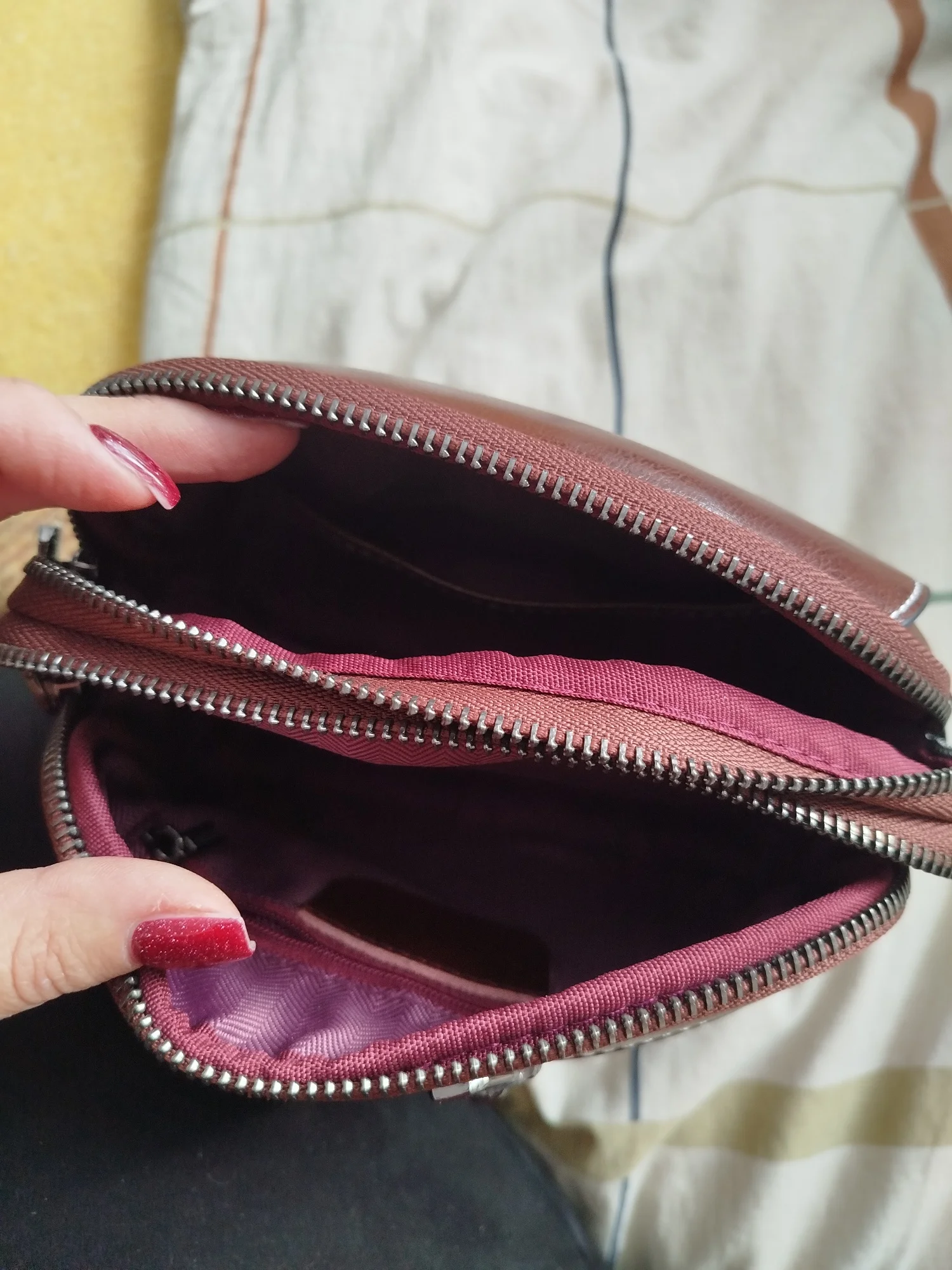 👍🔥😍 good. arrives intact. looks good. damn, it looks like genuine leather! can't believe it for such a price. inside there's a compartment and 2 pockets (one with a zipper). + 2 external ones, compact, convenient not to take out in the car, but everything necessary fits. seams, fittings, all high quality.