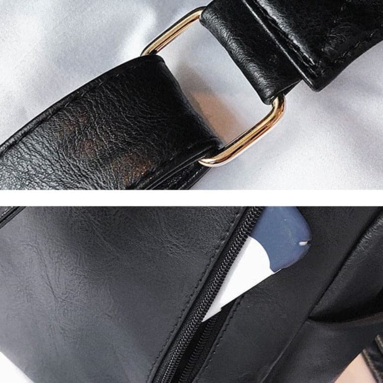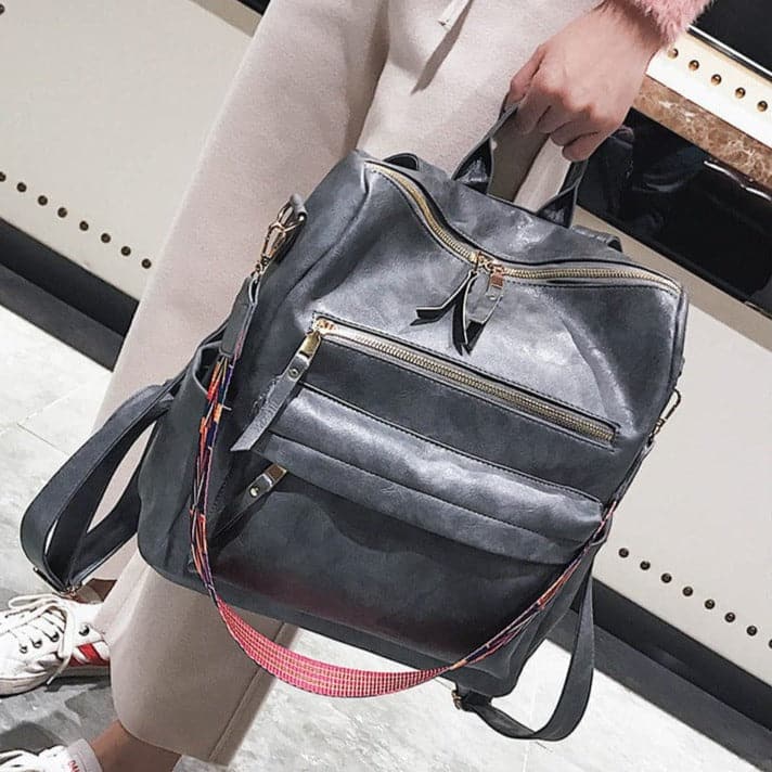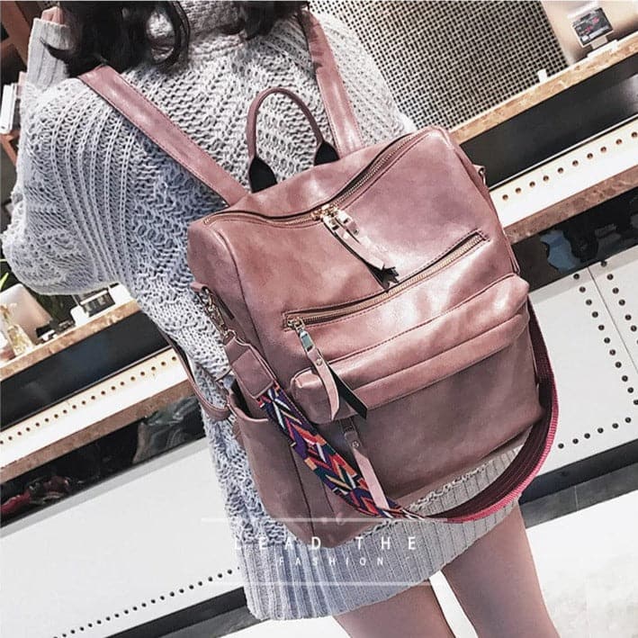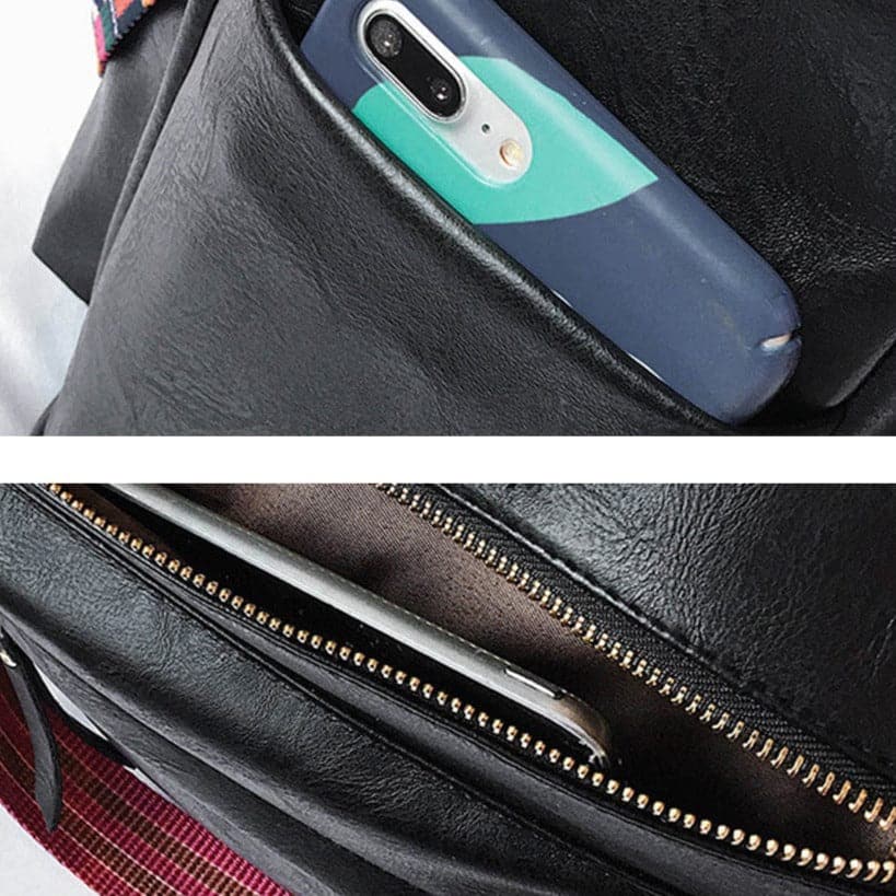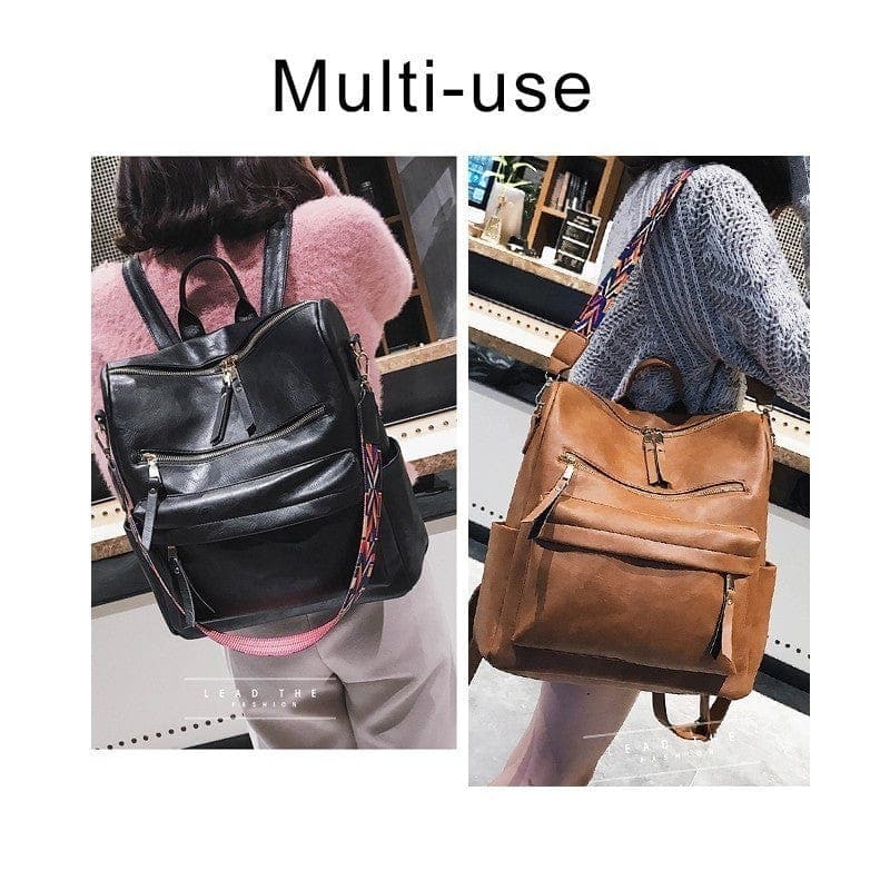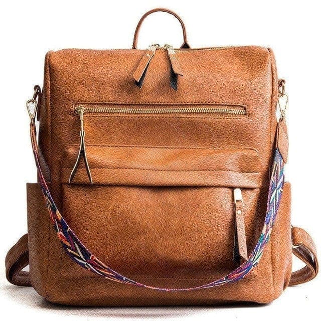 Introducing the Multi-Use Vegan Leather Tote Backpack! This stylish and versatile bag can be used as a tote, backpack, or shoulder bag, and features a colorful geometric strap. The soft, flexible faux leather is perfect for everyday use, and the multiple pockets make it easy to stay organized on the go. Whether you're headed to the office or the gym, this bag is sure to complement your look while being practical.