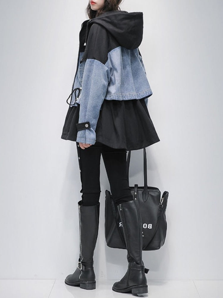 New Spring Autumn Middle and Long Windbreaker Women's Waist Is Slim Splicing Denim Jacket Women Denim Jacket Women Coats Tops
