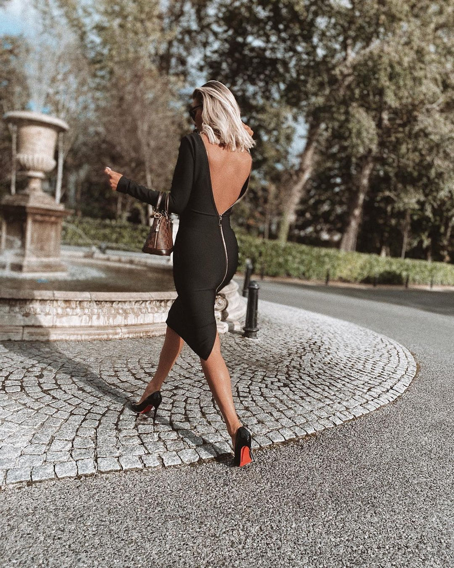 Add some colour to your wardrobe with our Open Back Black Midi Dress ! Featuring an open back with zipper in a body-hugging design. Style with heels and a mini bag for a look we're loving!