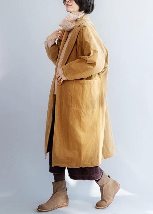 Organic yellow top quality trench coat Sewing big pockets women coats