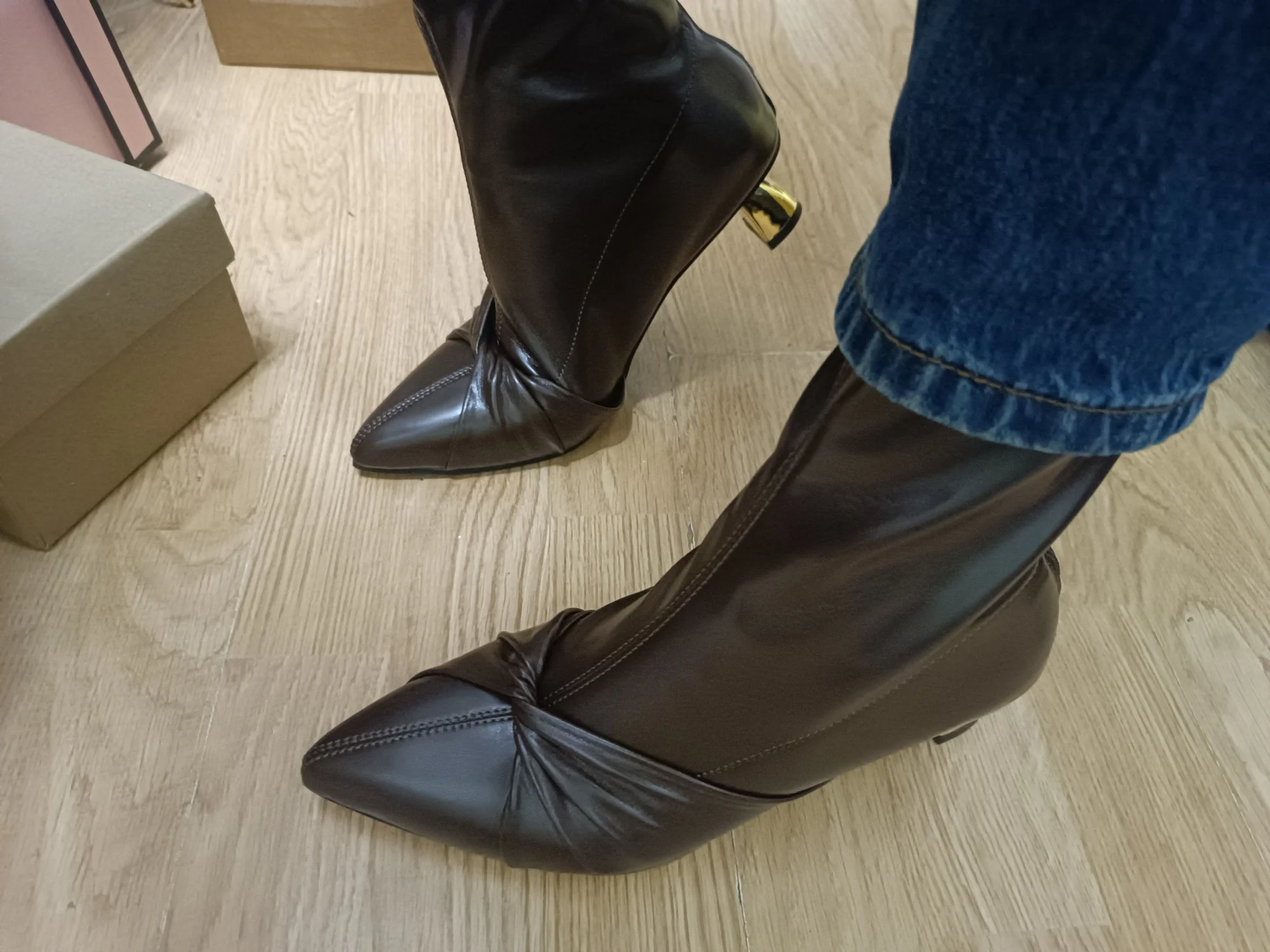 Designed for women who love fashion-forward winter footwear, these boots offer both style and comfort. The slim heel and polished leather create a sophisticated look, while the durable sole ensures safe and confident walking. Perfect for pairing with dresses, skirts, or skinny jeans, these boots combine luxury, comfort, and versatility.