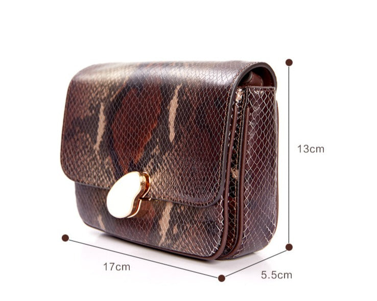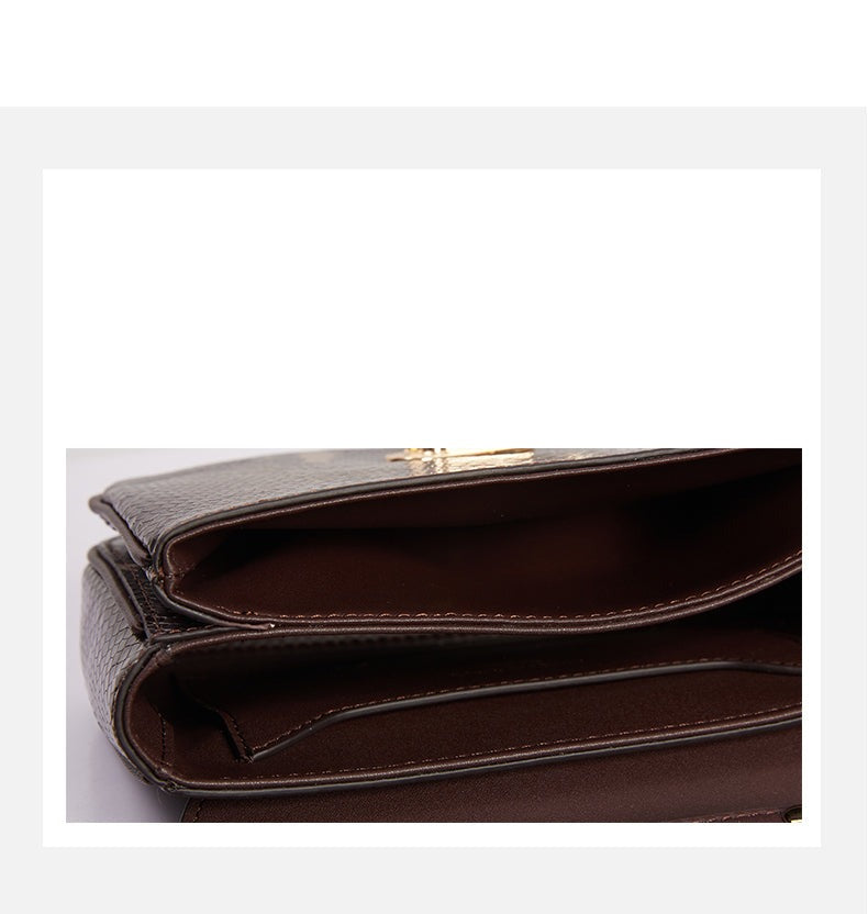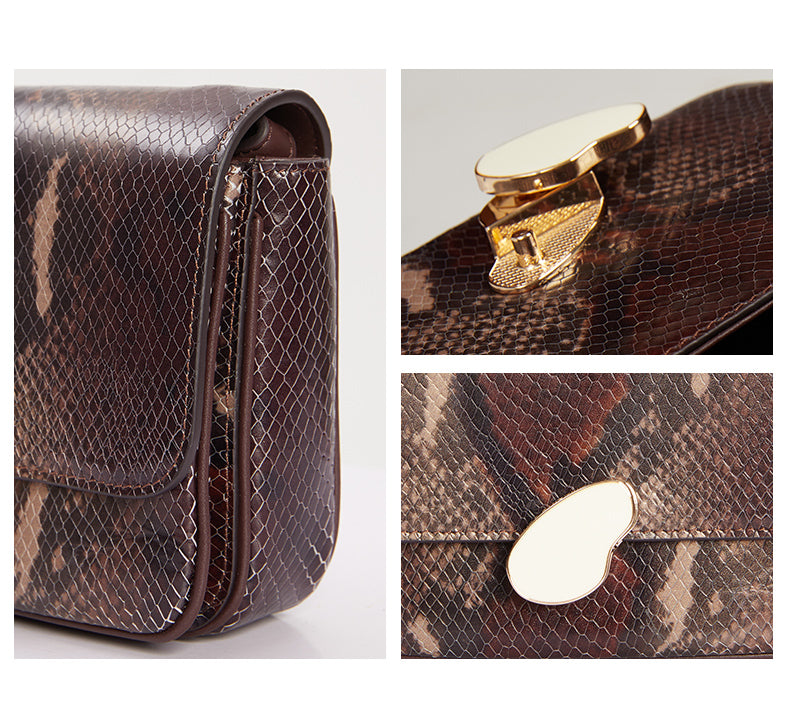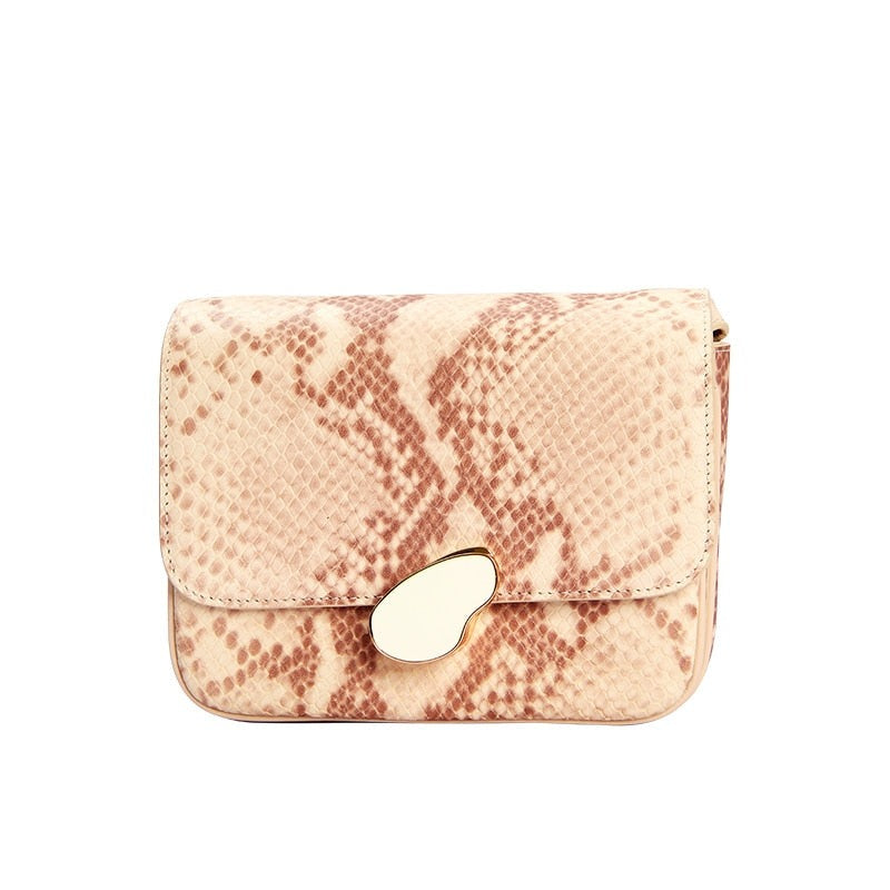 Idea of effortless evening style is this compact bag shining with a peas lock and a leather strap that can be worn long.
