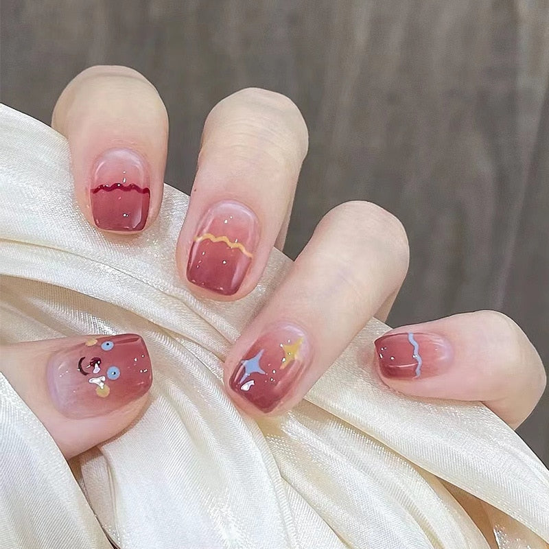 - Peel and Stick: Gently peel off the backing of the adhesive sticker, align the nail with your cuticle, and firmly press it onto your natural nail. Hold for a few seconds to secure the bond.