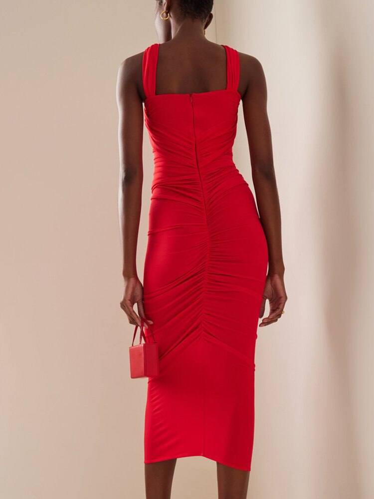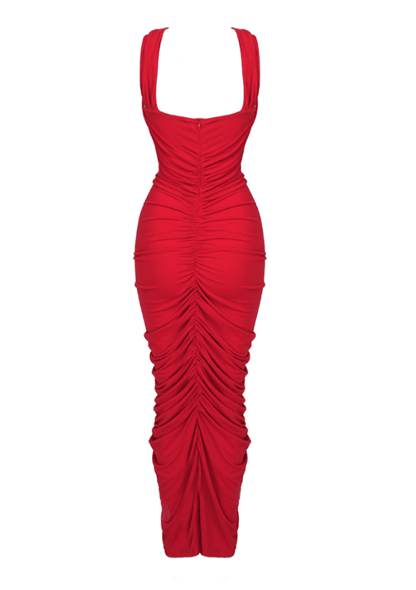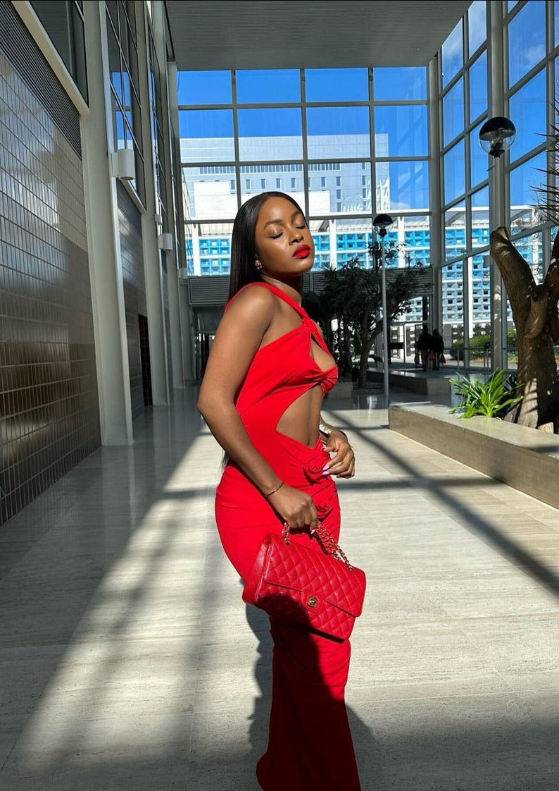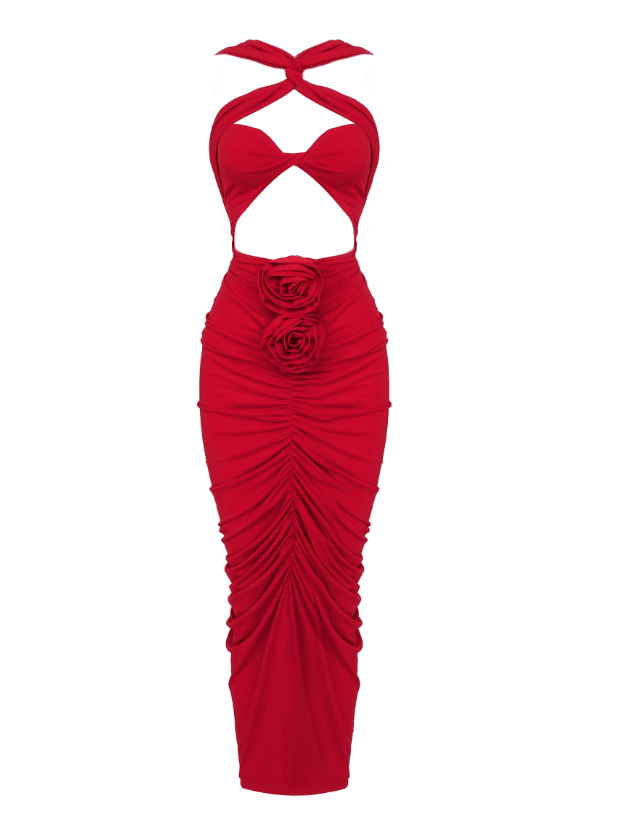 Add some fiercely feminine vibes to your weekend plans with Red Maxi Dress with Cutouts and Flowers. Featuring crisscross straps, cut out detailing, floral appliqué and ruching throughout. Style with strappy heels and minimal accessories to complete the look everyone is obsessed with.