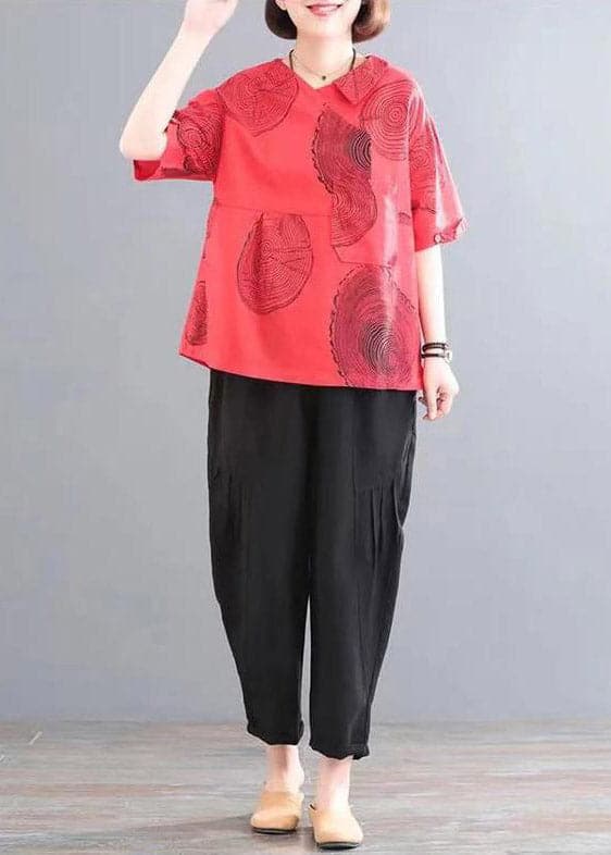 Red Patchwork Pockets Top And Crop Pants Two Piece Set Summer