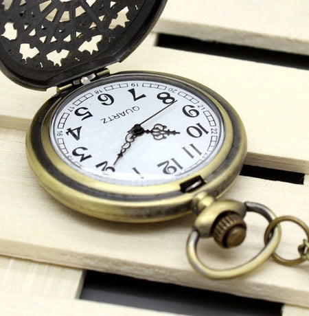 Retro Antique Unisex Bronze Hollow Sunflowers Flip Pocket FOB Watch