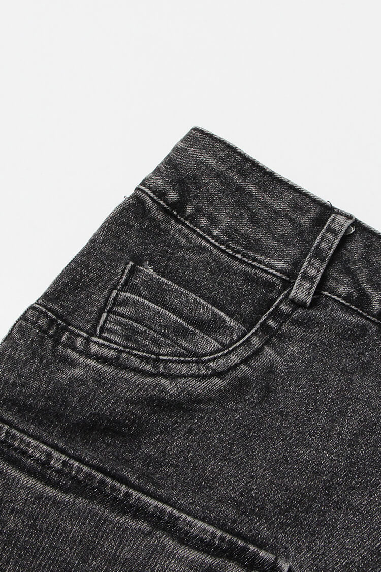 Retro Button Up Crop Jacket Cargo Pocket Two Piece Denim Micro Mini Dress