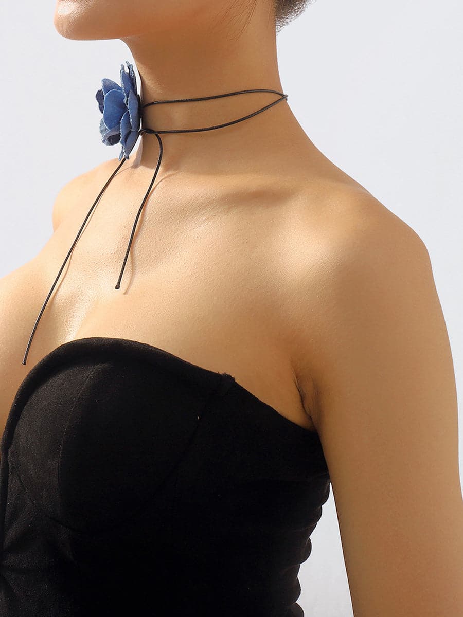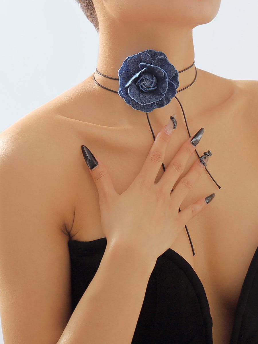 This retro inspired denim choker necklace is the perfect accessory to show off your style. With its easy-to-wear design, this timeless piece is sure to become a staple in your wardrobe. Get it today and make a statement!