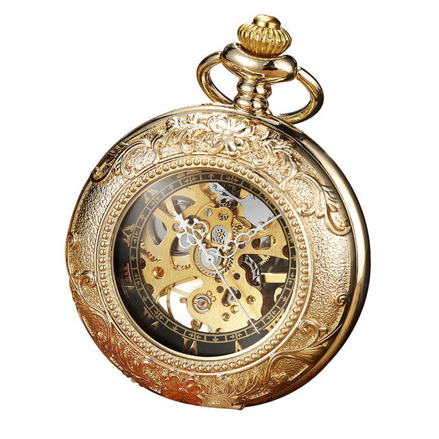 Retro Golden Steel Hollow Exquisite Sculpture Mechanical Pocket FOB Watch