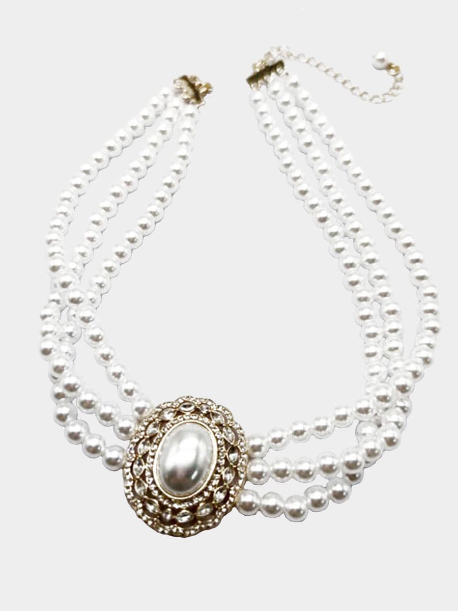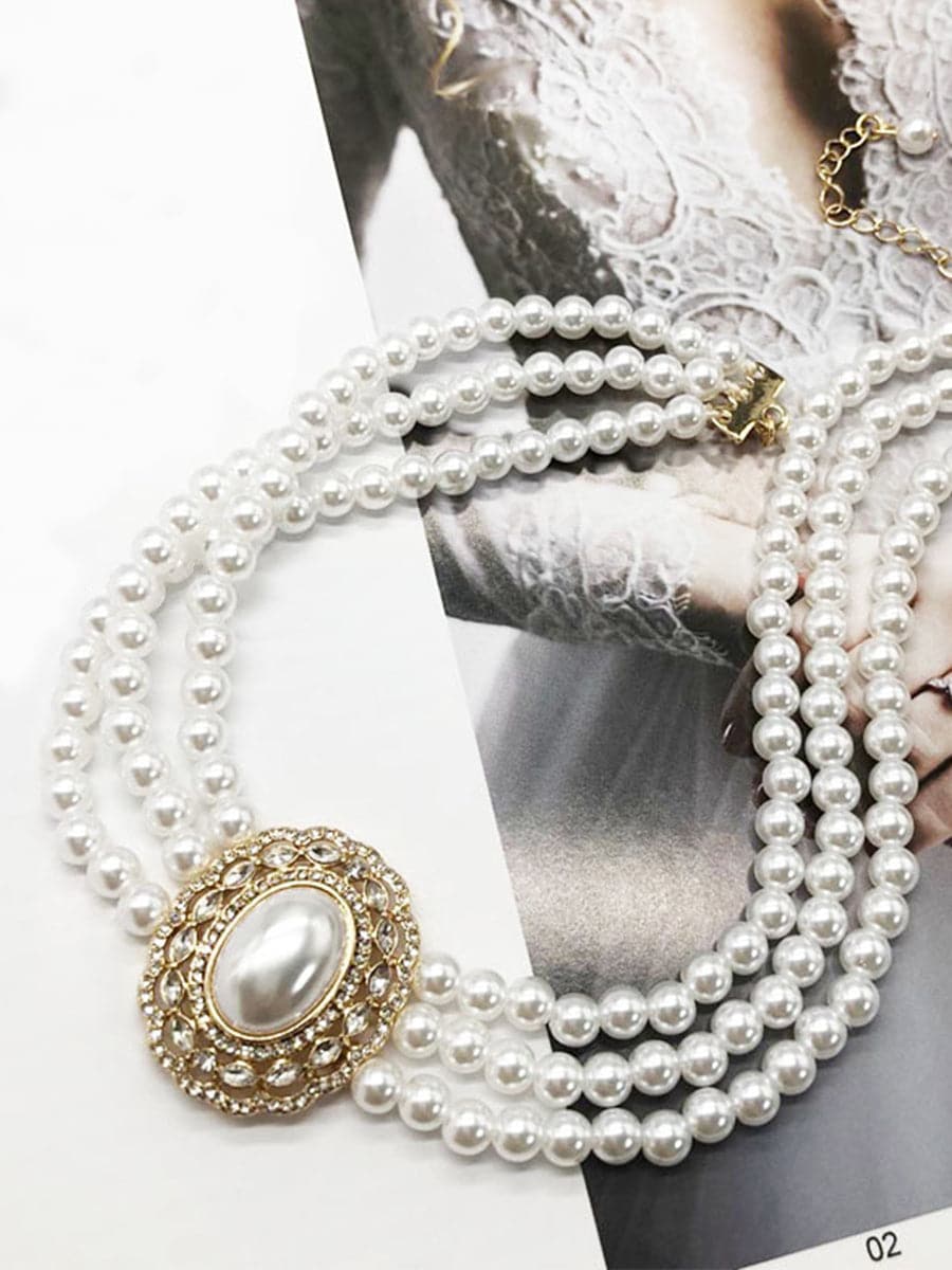 Retro Light Luxury Pearl Rhinestone Necklace MSE033124