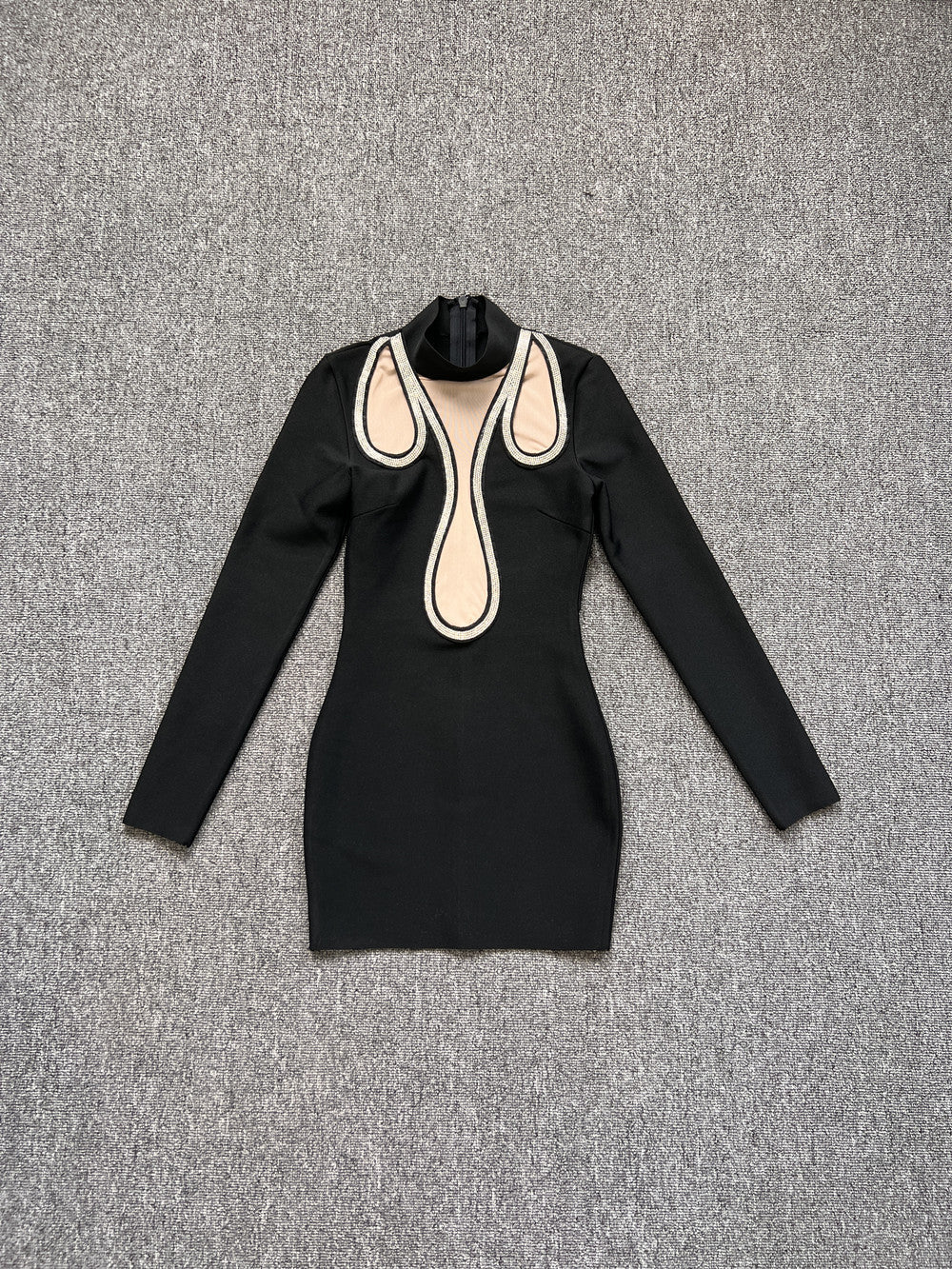 Available in sizes S-L, this sexy dress radiates confidence and elegance. Its solid black color highlights the richness of the design, making it the ultimate statement piece for formal gatherings. Elevate your fashion aspirations and embrace the glamour our Rhinestone Short Formal Dress brings to your wardrobe. Whether it's a black-tie event or a formal soiree, this dress is designed to captivate with its long sleeves and exceptional style.