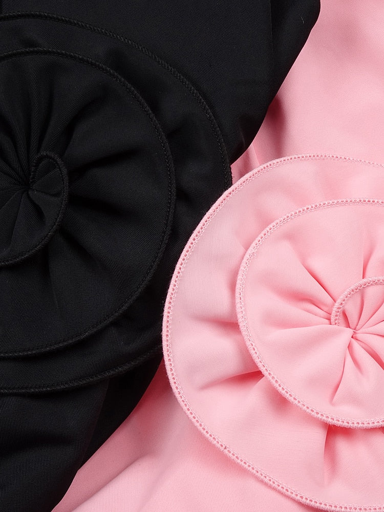 Unveil effortless elegance with the Ruffles Mini Dress with Neck Flower . Crafted with luxurious black fabric, this figure-hugging dress features a high neckline, draped short sleeves, and a delicate rose adornment for an extra touch of femininity. An exquisite piece for any special occasion.