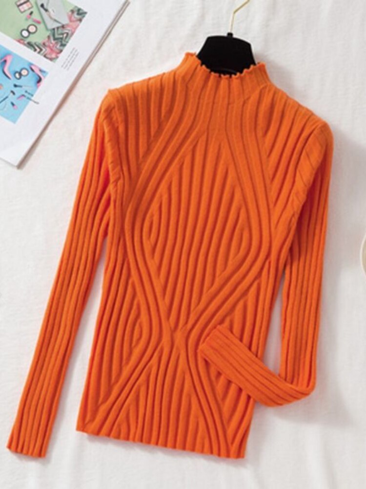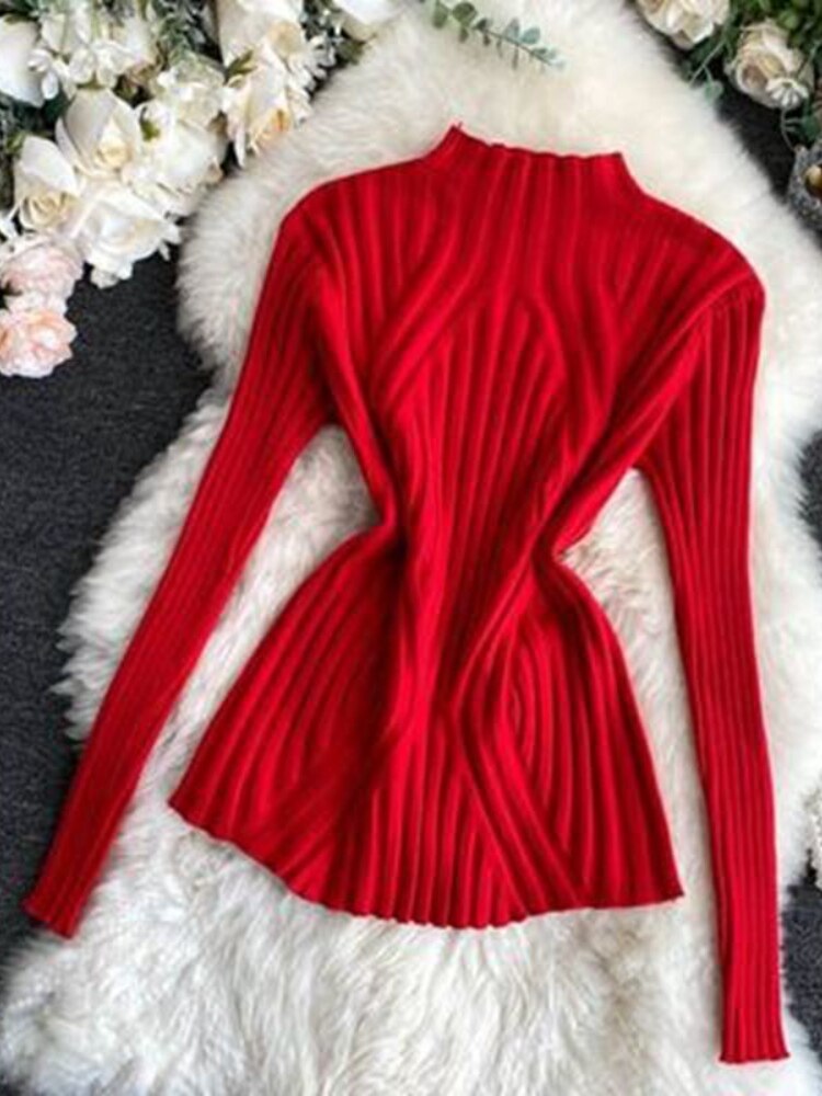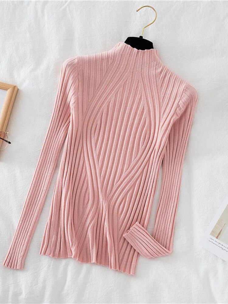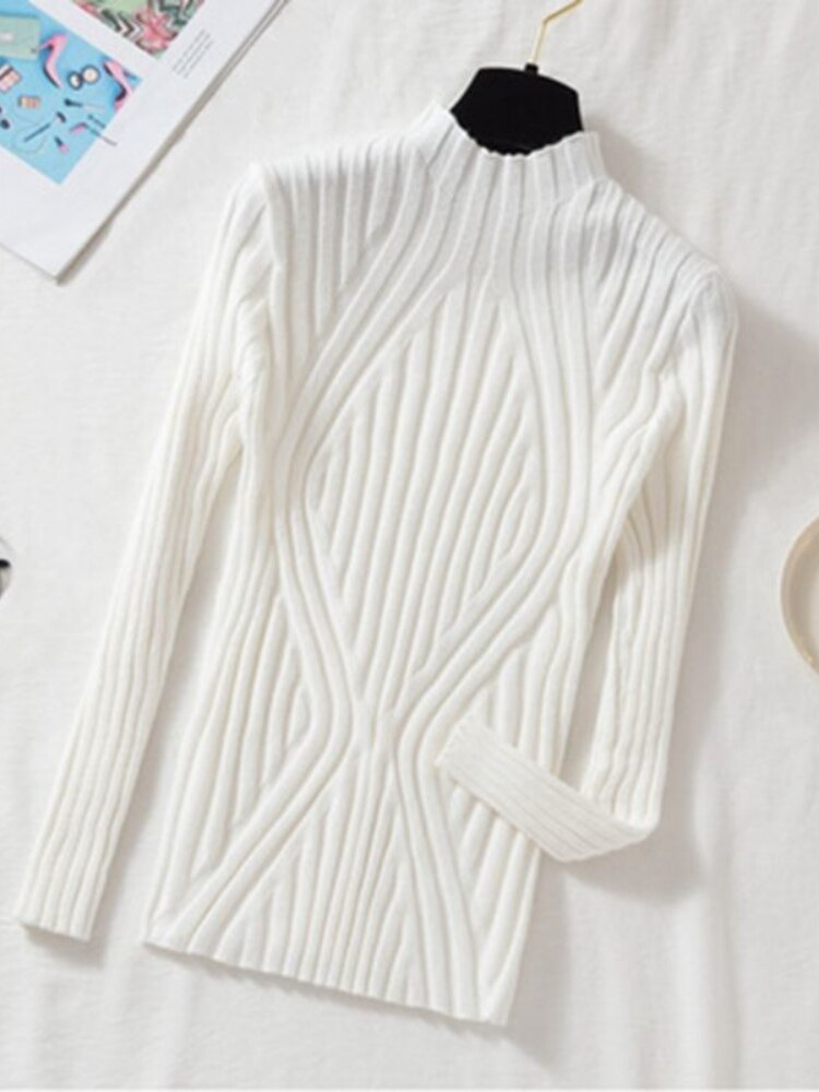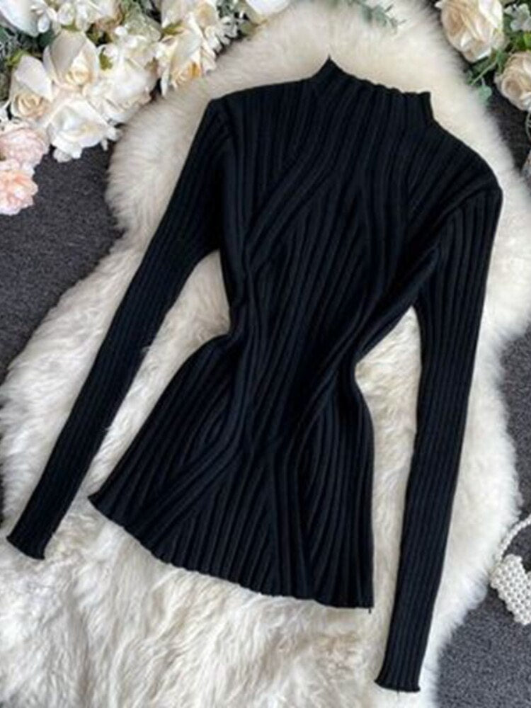Semi-turtleneck Knitted Bottoming Shirt Long Sleeve Shirt Autumn Winter New Tight Pit Sweater Pullover for Women Sweater Women
