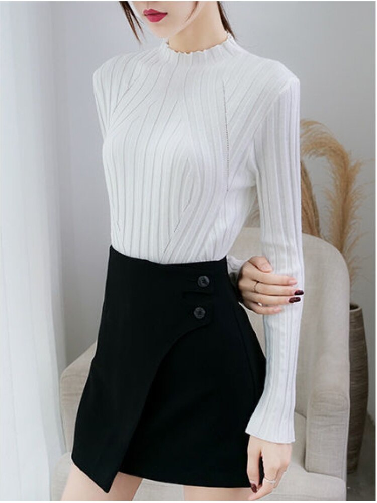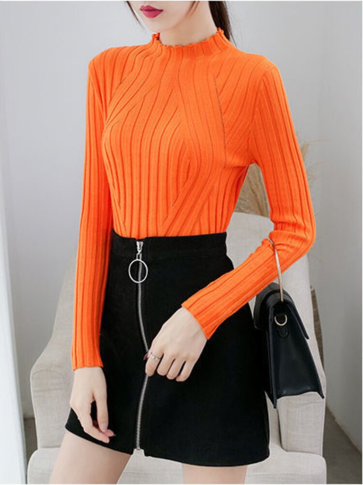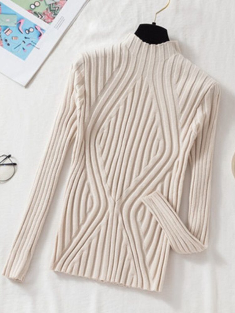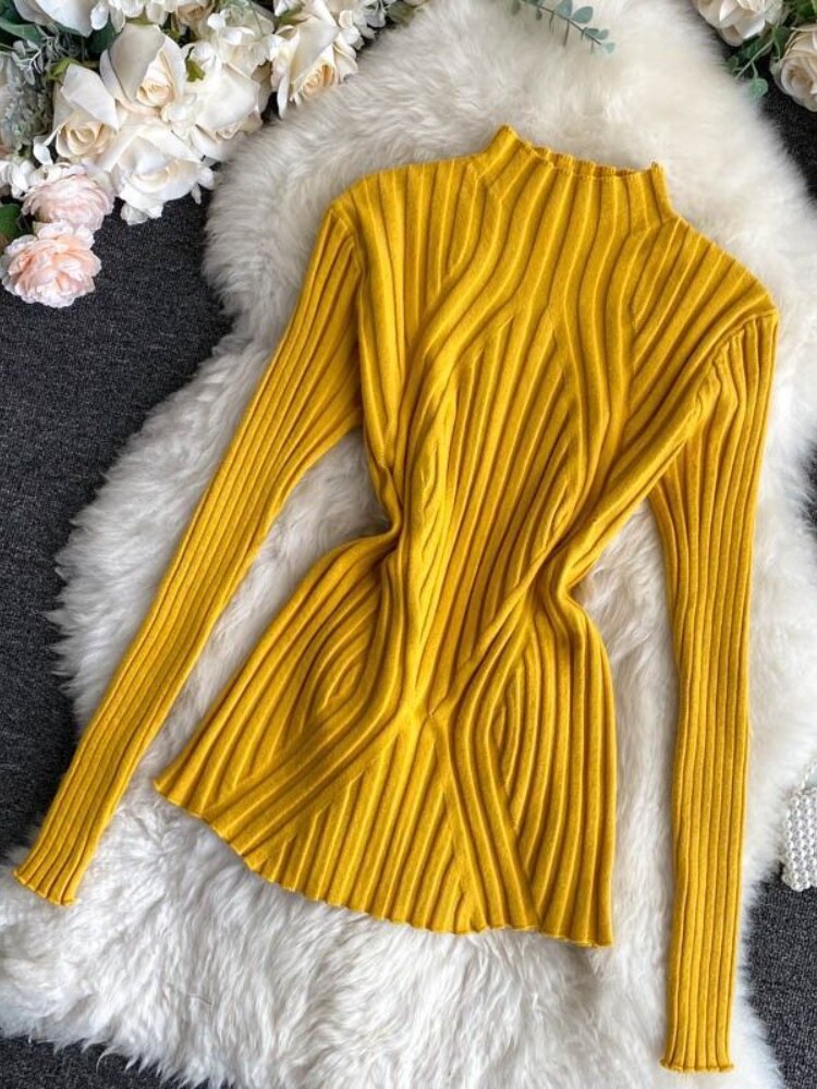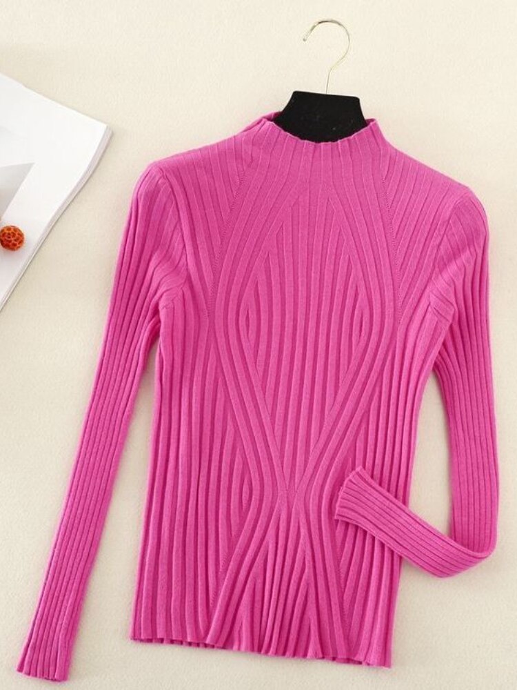 Semi-turtleneck Knitted Bottoming Shirt Long Sleeve Shirt Autumn Winter New Tight Pit Sweater Pullover for Women Sweater Women