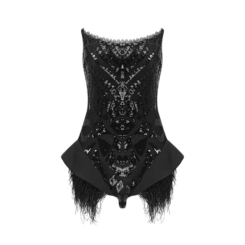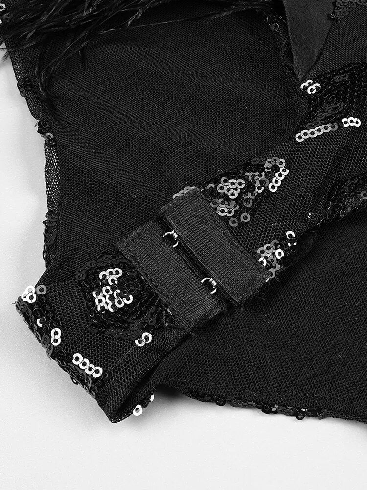 Sequin Bodysuit with Feathers