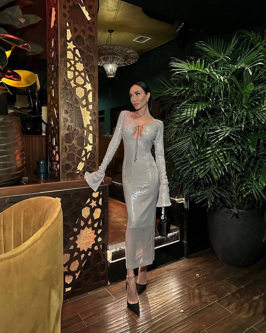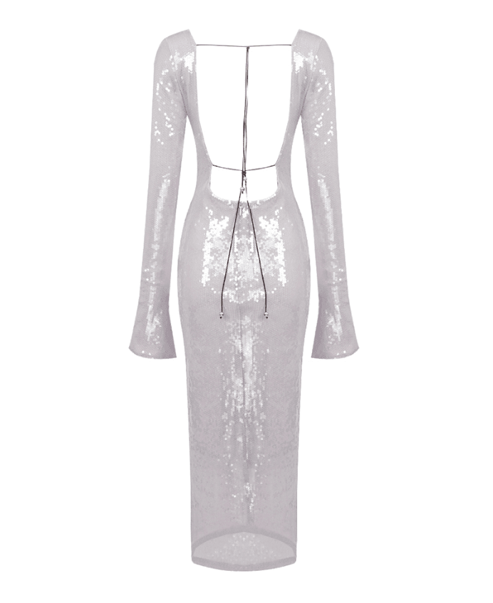 Turn up the heat with Sequined Lavender Maxi Dress with Open Back. Featuring a sequin material with a plunge neck, a split cuff detail and a flattering fit, we are in love. Team with heels and accessories for a look that will get everyone talking.