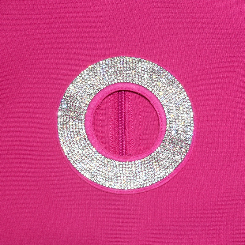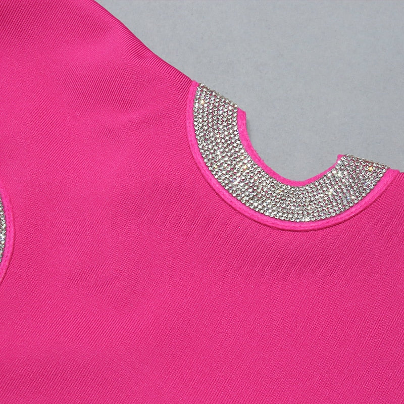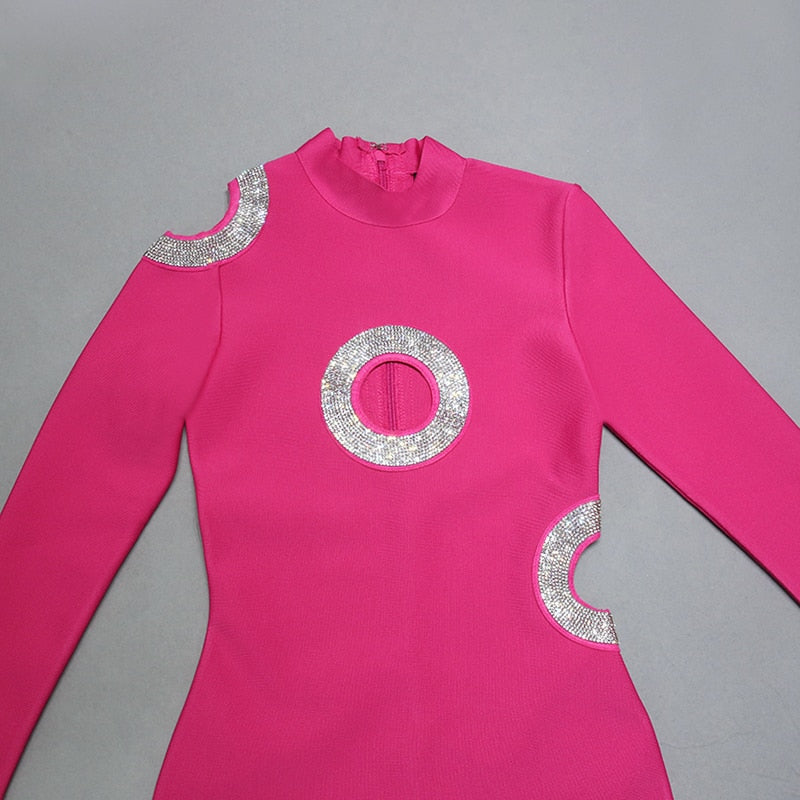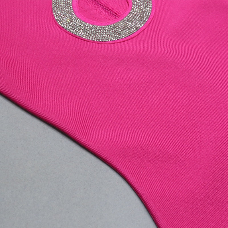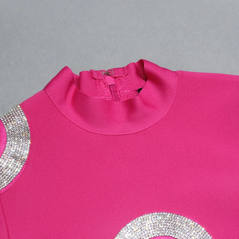 This mini dress falls above the knee and features a diamond decoration that adds a touch of sparkle to your look. The closure is a zipper that ensures a secure fit and allows for easy on and off. The slim fit design of the dress is perfect for showing off your curves and creating a flattering silhouette.