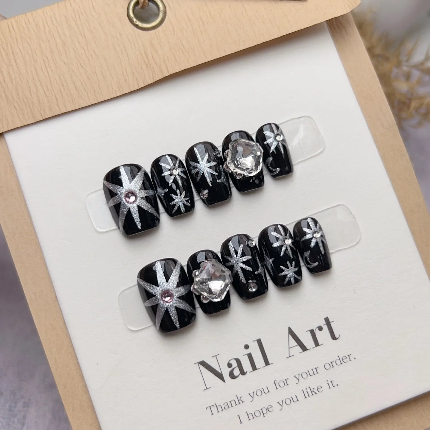 ・10 pcs *handmade fake Press on nails (Nail size selection: Generally select XS size for small nails,S size and M size for normal fingers, and L size for large nails. If you want a standard point, please measure it according to the method we provide. Size should not be small,for example: the measurement is 11.5mm then choose 12mm )