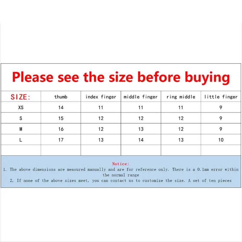 ・10 pcs *handmade fake Press on nails (Nail size selection: Generally select XS size for small nails,S size and M size for normal fingers, and L size for large nails. If you want a standard point, please measure it according to the method we provide. Size should not be small,for example: the measurement is 11.5mm then choose 12mm )