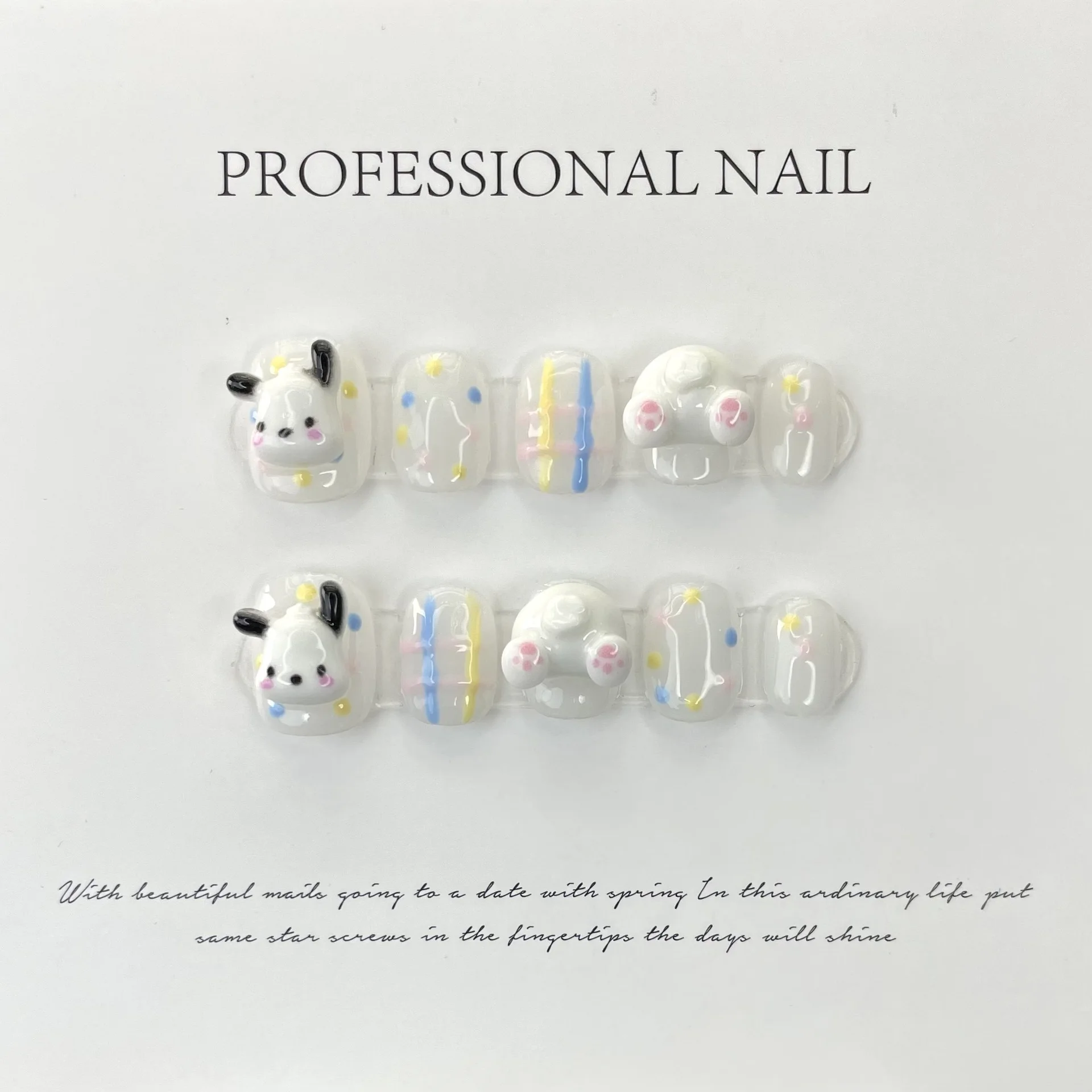 Short Wearable Kawaii Dog Handmade Press on Nails Full Cover Artificial Cute Nail Art For Girl Acrylic High Quality Fake Nails
