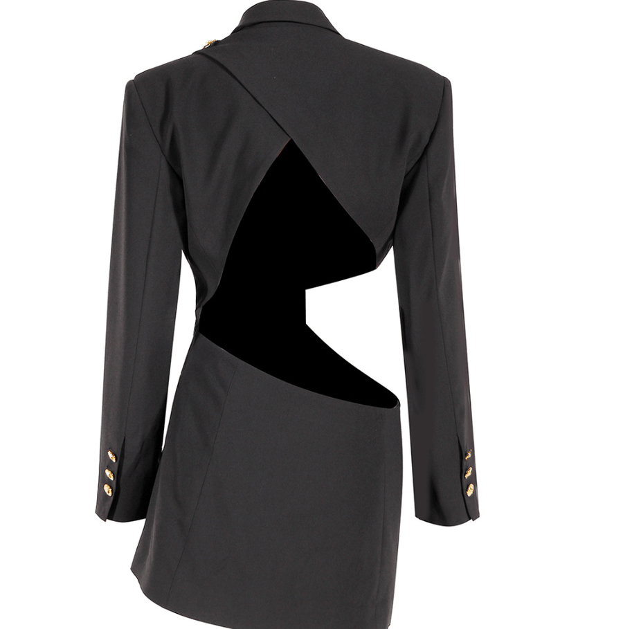 Get ready to look super chic in our Side-cut Blazer! Featuring a double breasted design with a deep neckline and pin details. Style with strappy heels for a a night-out look!