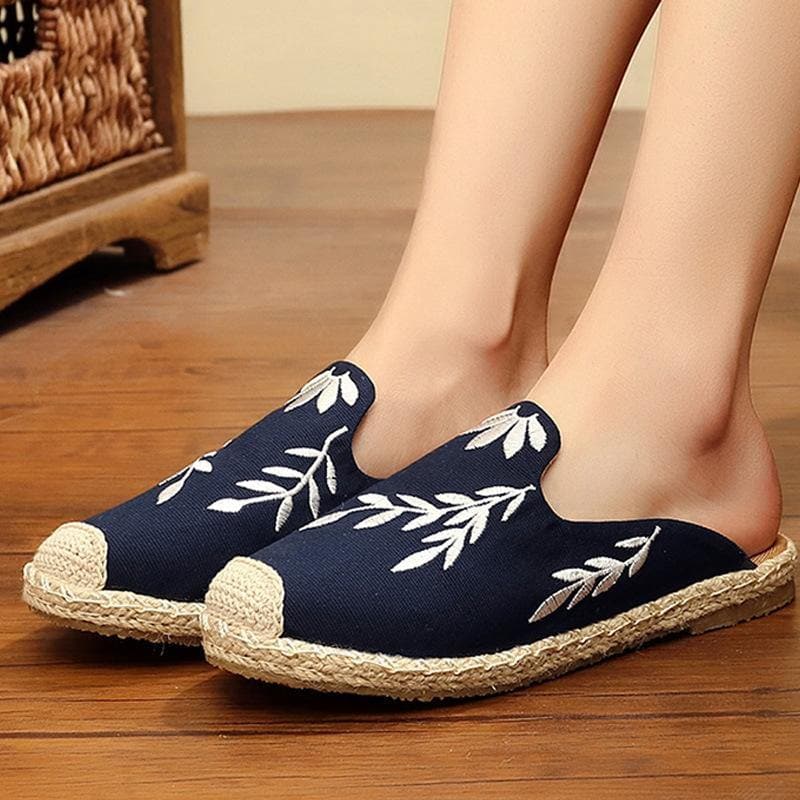 Simple Splicing Red Cotton Fabric Embroideried Slippers Shoes