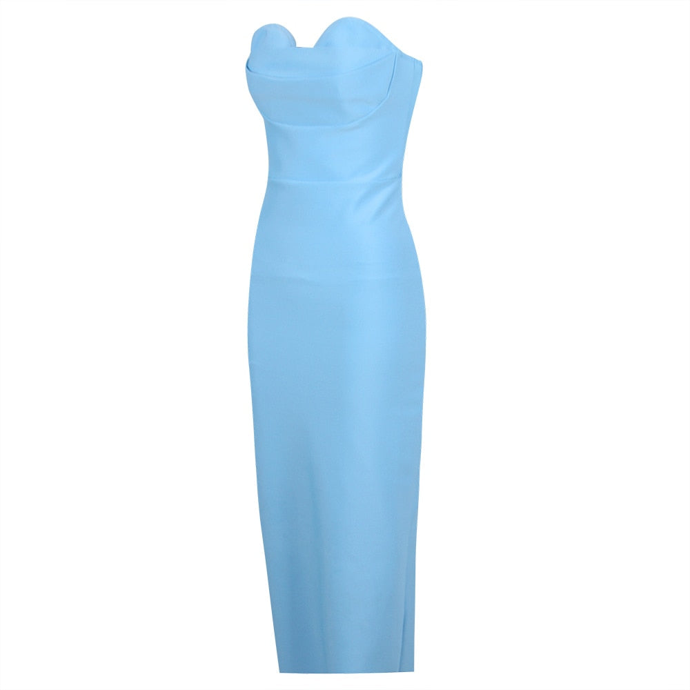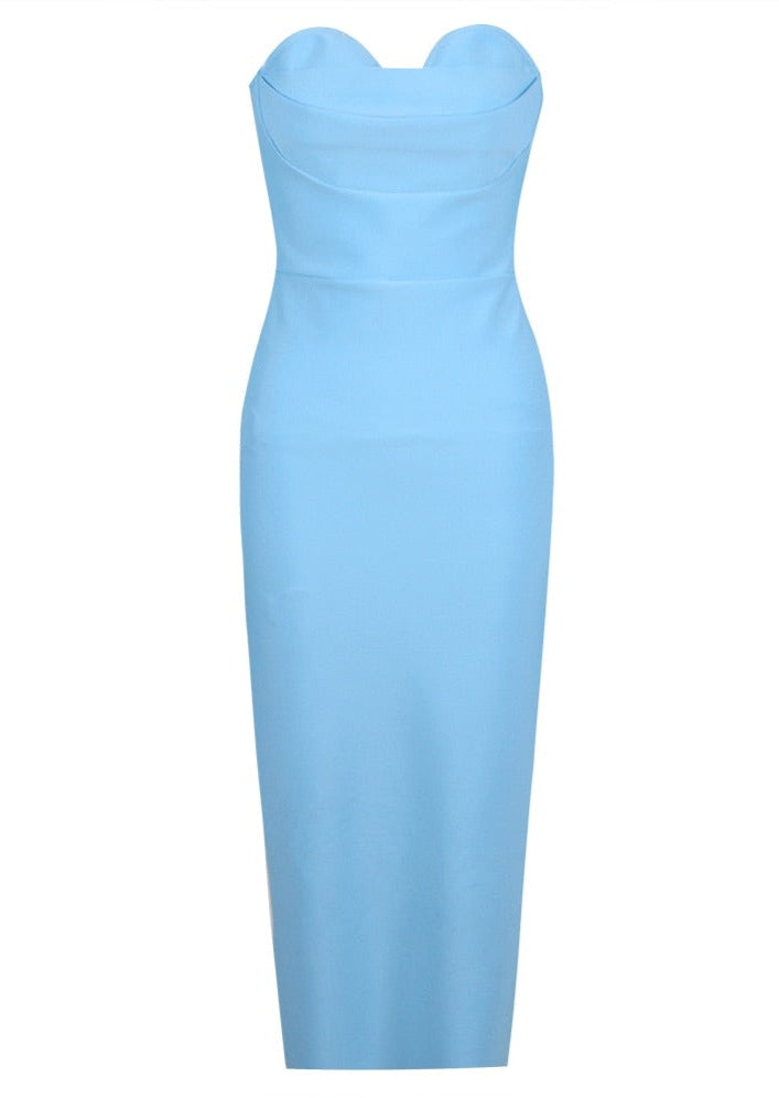 The Sky Blue Midi Dress with Open Shoulders is our adorable dress. Featuring a bandage fabric in a great design that hug your curves in the most flattering way. This dress is sure to make you feel feminine and sexy for any occasion.