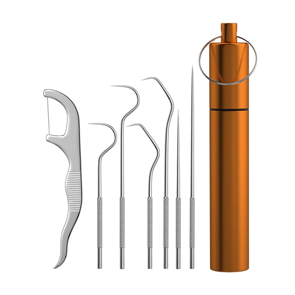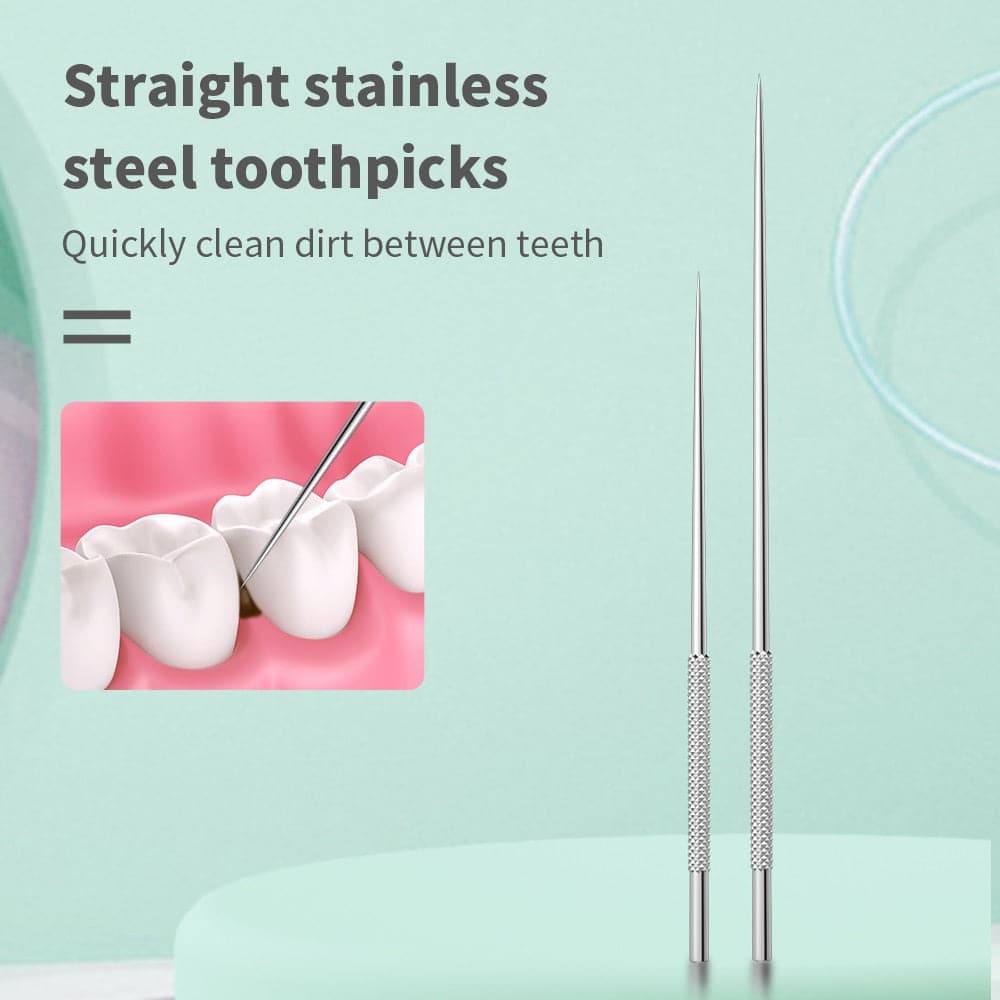 - Portable Stainless Steel Toothpicks Instead of the cheap & weak dental scraping tools. It is made of smooth stainless steel metal with ultimate strength.