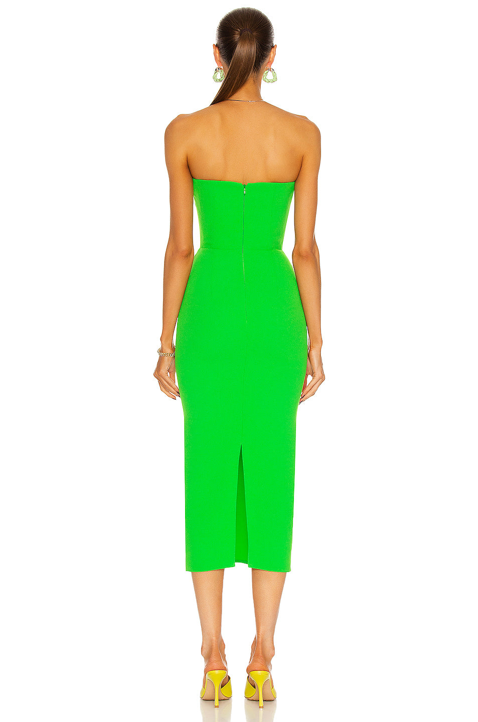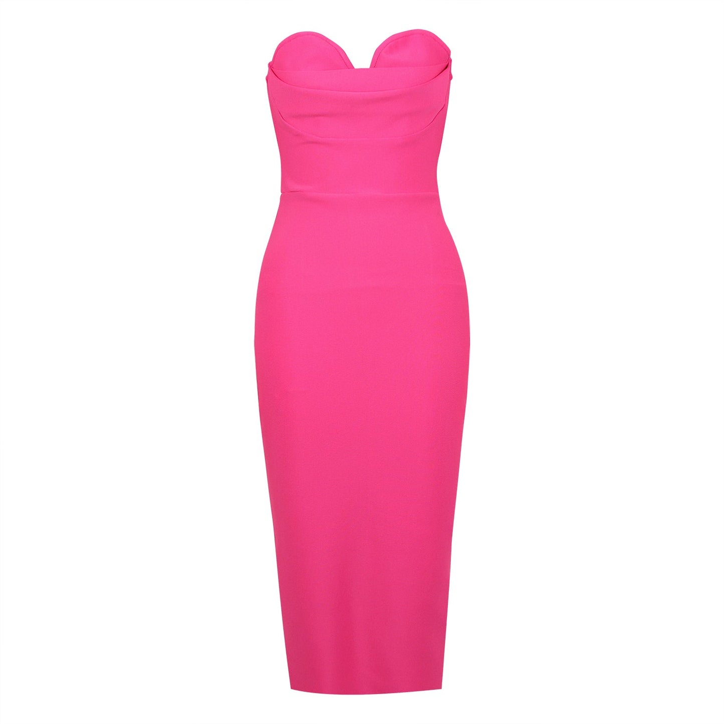 Women Strapless V Neck Split Midi Bodycon Bandage Dress