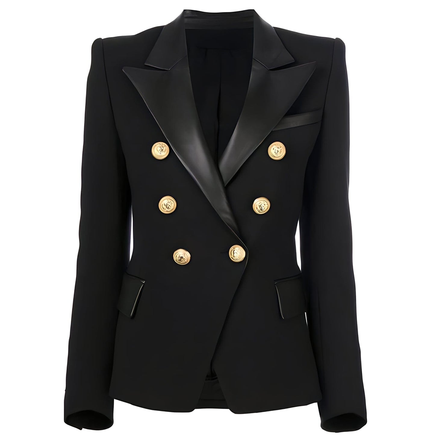 The "Annette" Blazer features a premium, polyester-cotton fabric composition, a luxurious faux-leather lapel, and detailed construction throughout. You're going to love the way you look and feel in this piece. Be exclusive.
