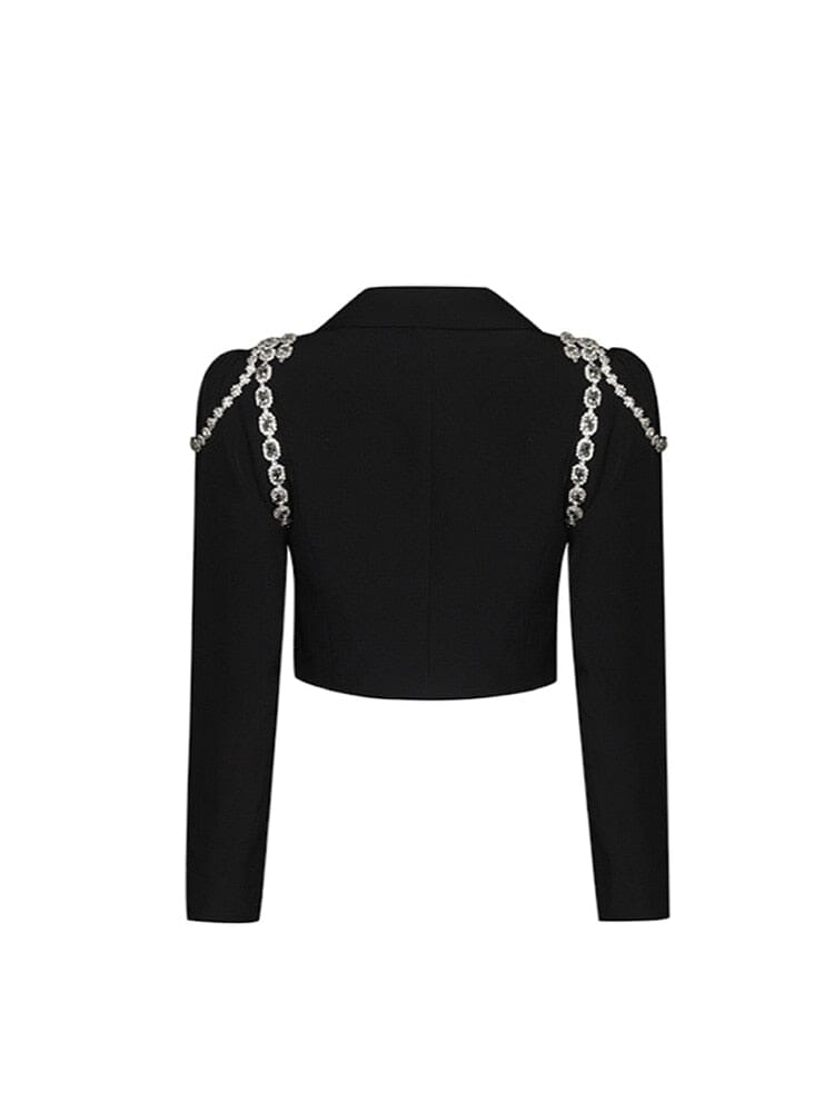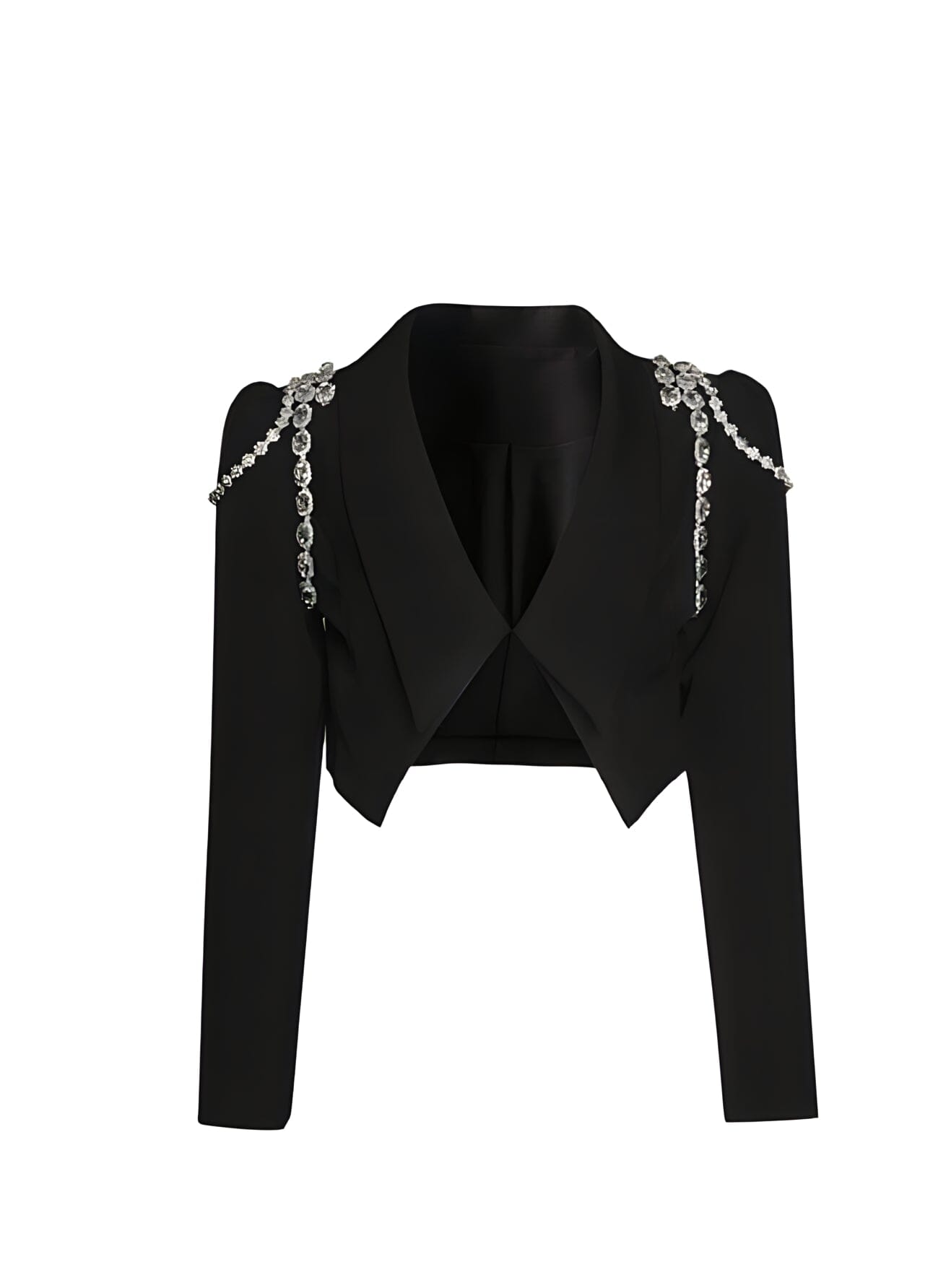 Expect to have all eyes on you, while wearing this must-have piece, designed with superior comfort and vintage styling. Featuring a notched collar, sequin beaded shoulder panel accents, full-length sleeves and modern cropped construction. The "Evelyne" cropped blazer makes the perfect addition to any wardrobe, don't hesitate to make a statement.