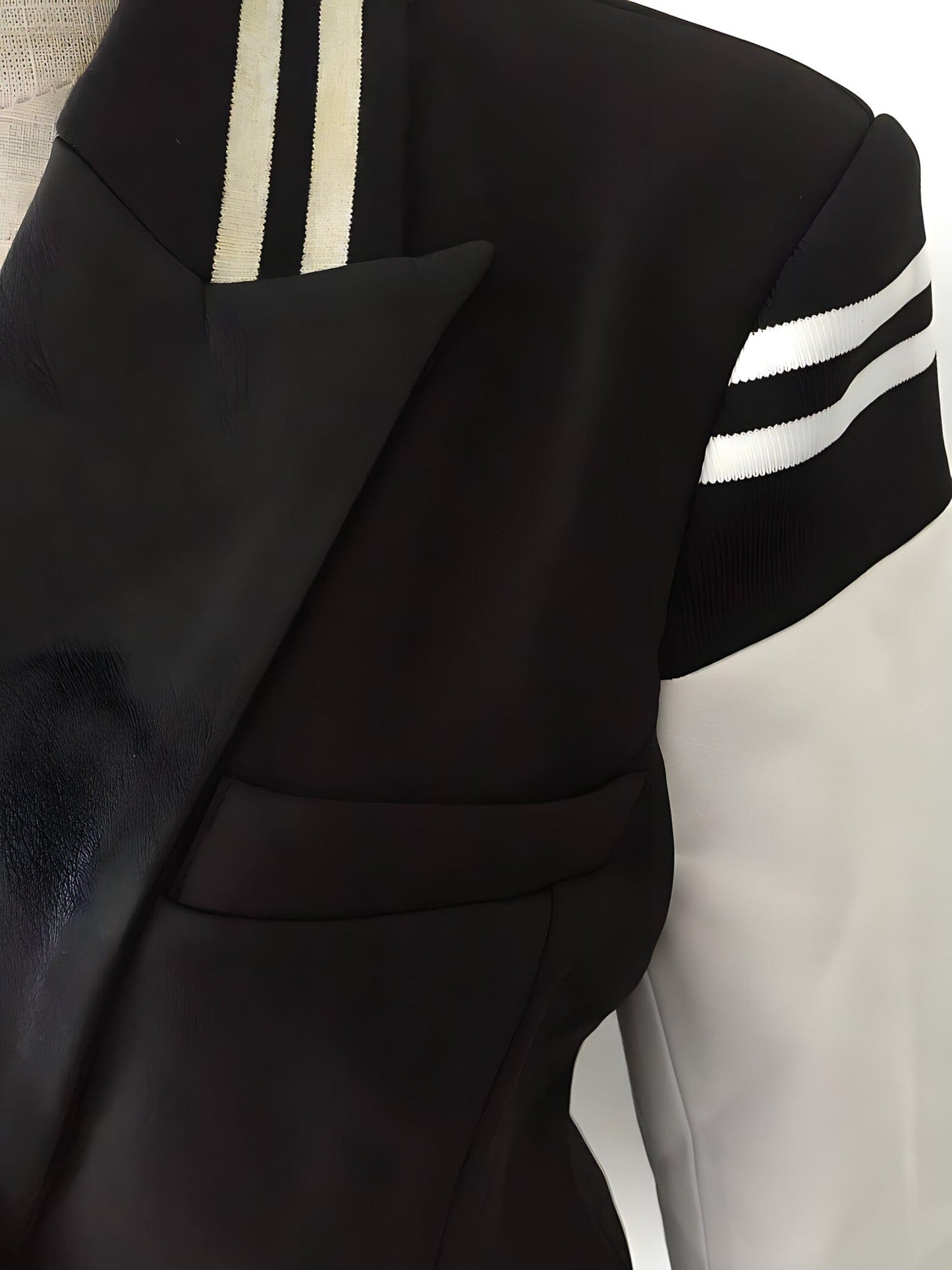 The "Felicity" Jacket features a premium, polyester-cotton blend and a sporty design - fusing a luxuriously crafted blazer with a classic varsity jacket to create a truly one of a kind piece. Accent faux-leather sleeves, and detailed construction throughout make this piece nothing short of a wardrobe essential.