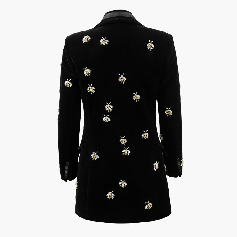 The "Giovanna" features golden bumble bees embroidered on a buttery soft velvet exterior, and a slim, European fit perfect for the progressive modern woman. We know you're going to love the way you look and feel in this instant head turner.