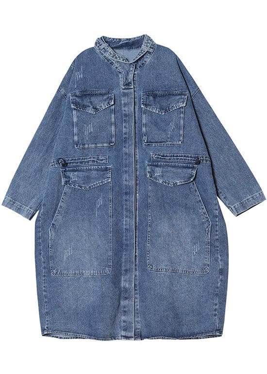 Unique Blue Pockets Button Loose Fall Denim Long sleeve Coats trench coats