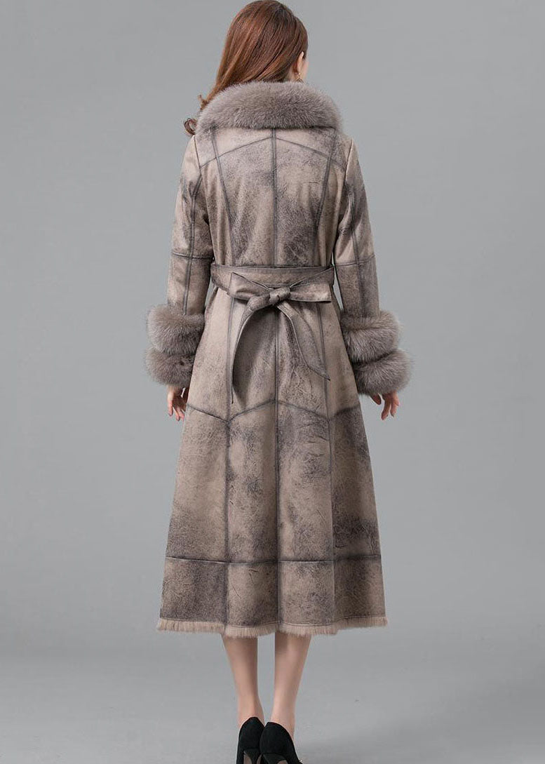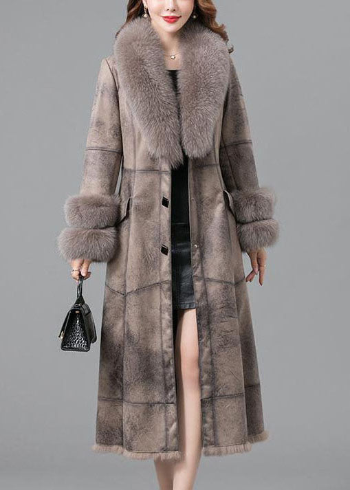 Unique Khaki Fur Collar Button Parkas Women Witner Coats