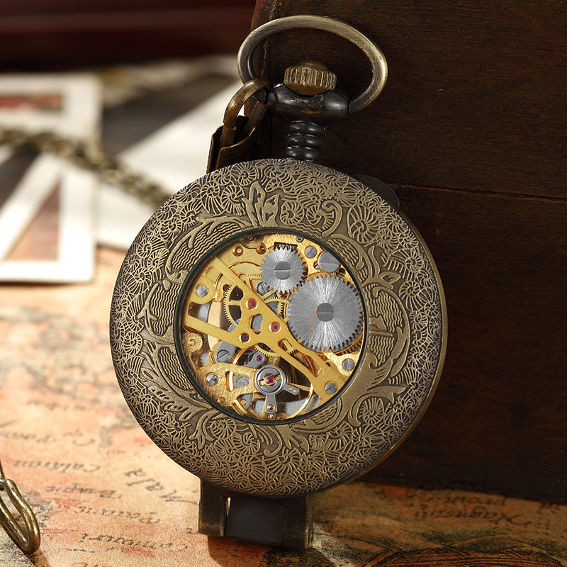Unisex Antique Copper Fashion Mechanical Hand Wind Pocket Watch