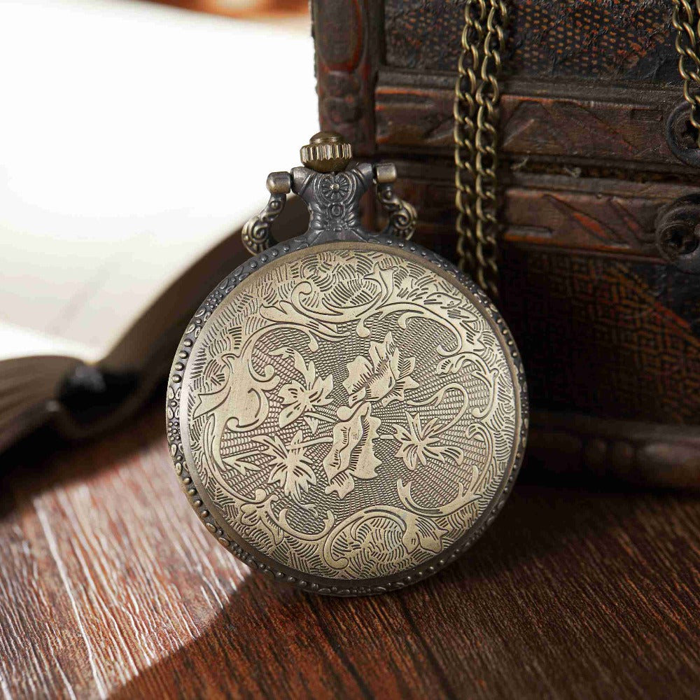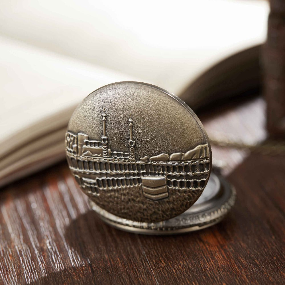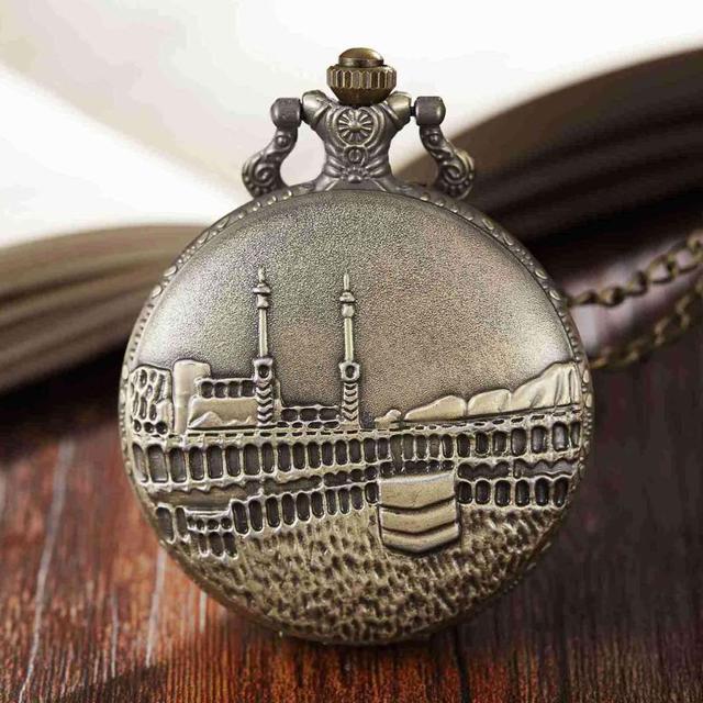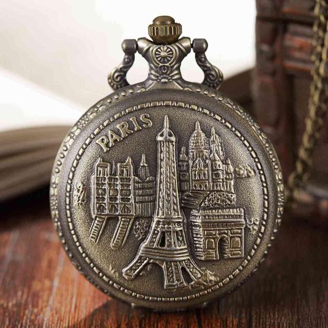 Unisex Antique Pair View Eiffel Tower Full Hunter Necklace Pocket Fob Watch