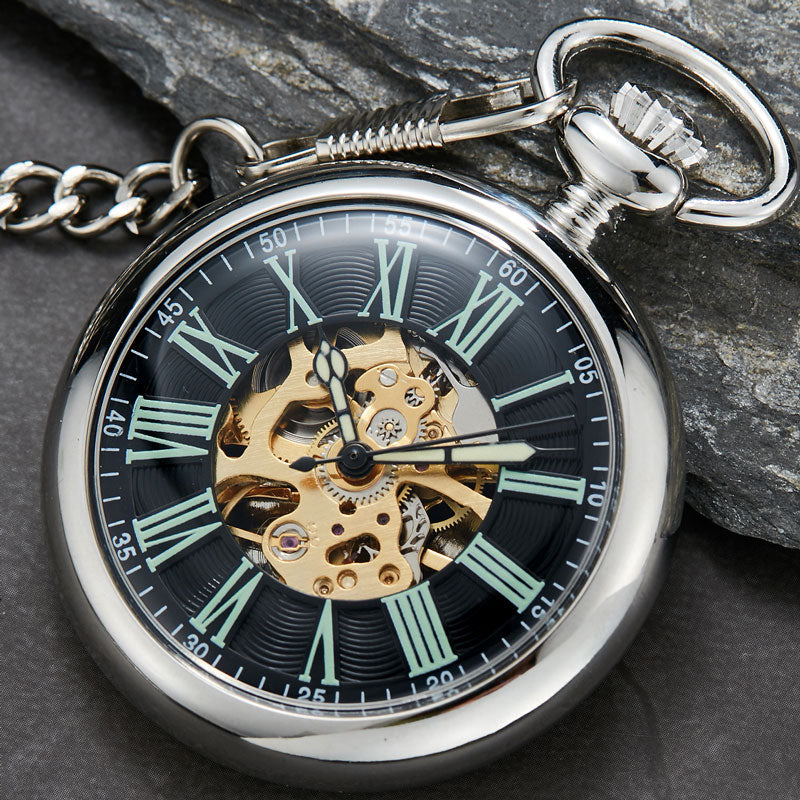 If you love skeleton design watches and antique style, you're sure to add a touch of style to your look with this smooth silver-finish unisex pocket fob watch. This watch is made with alloy with mechanical hand-wind movement. This timepiece with its stunning design will definitely catch everyone's attention.