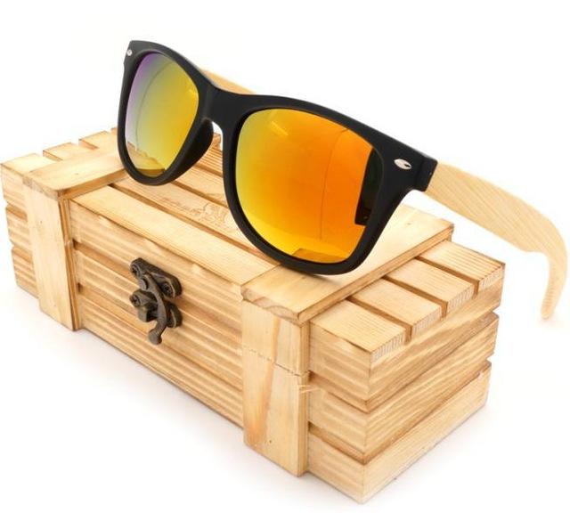 Unisex Bamboo Legs Polarized Lens Sun Glasses with Wood Gift Boxes